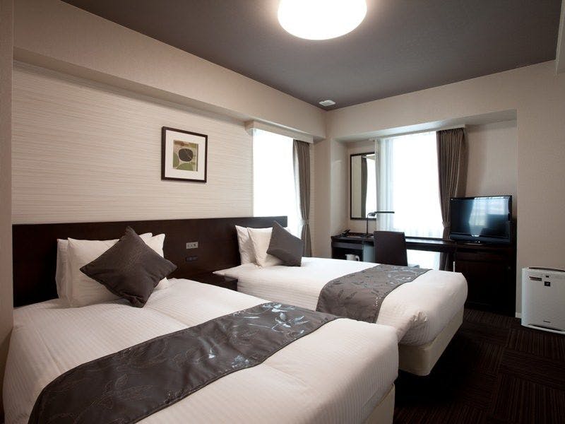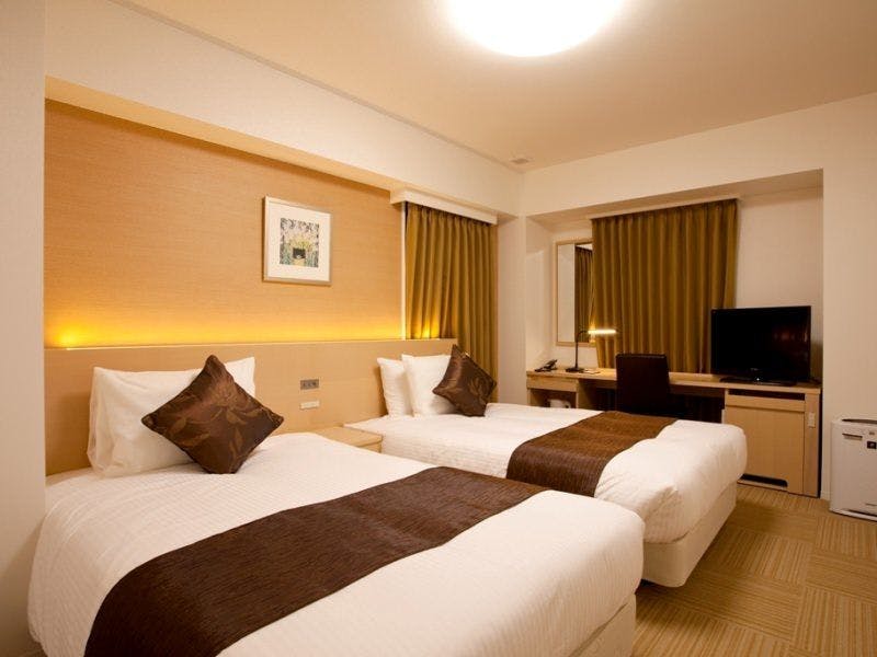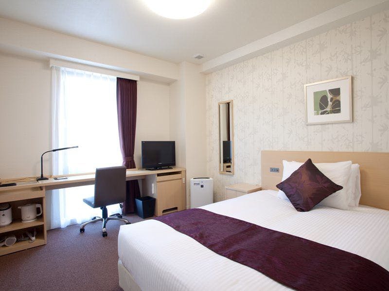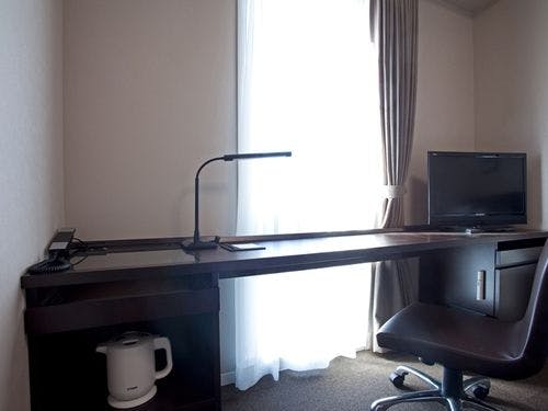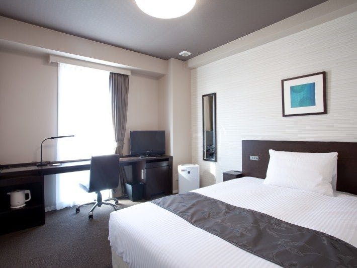 シングルルームでは市内トップクラスの広さを確保。シモンズ社製ベッドや加湿空気清浄機などを標準装備する他、全室LAN回線及びWi-Fi環境を備え、ゆとりあるワークスペースを確保しています。