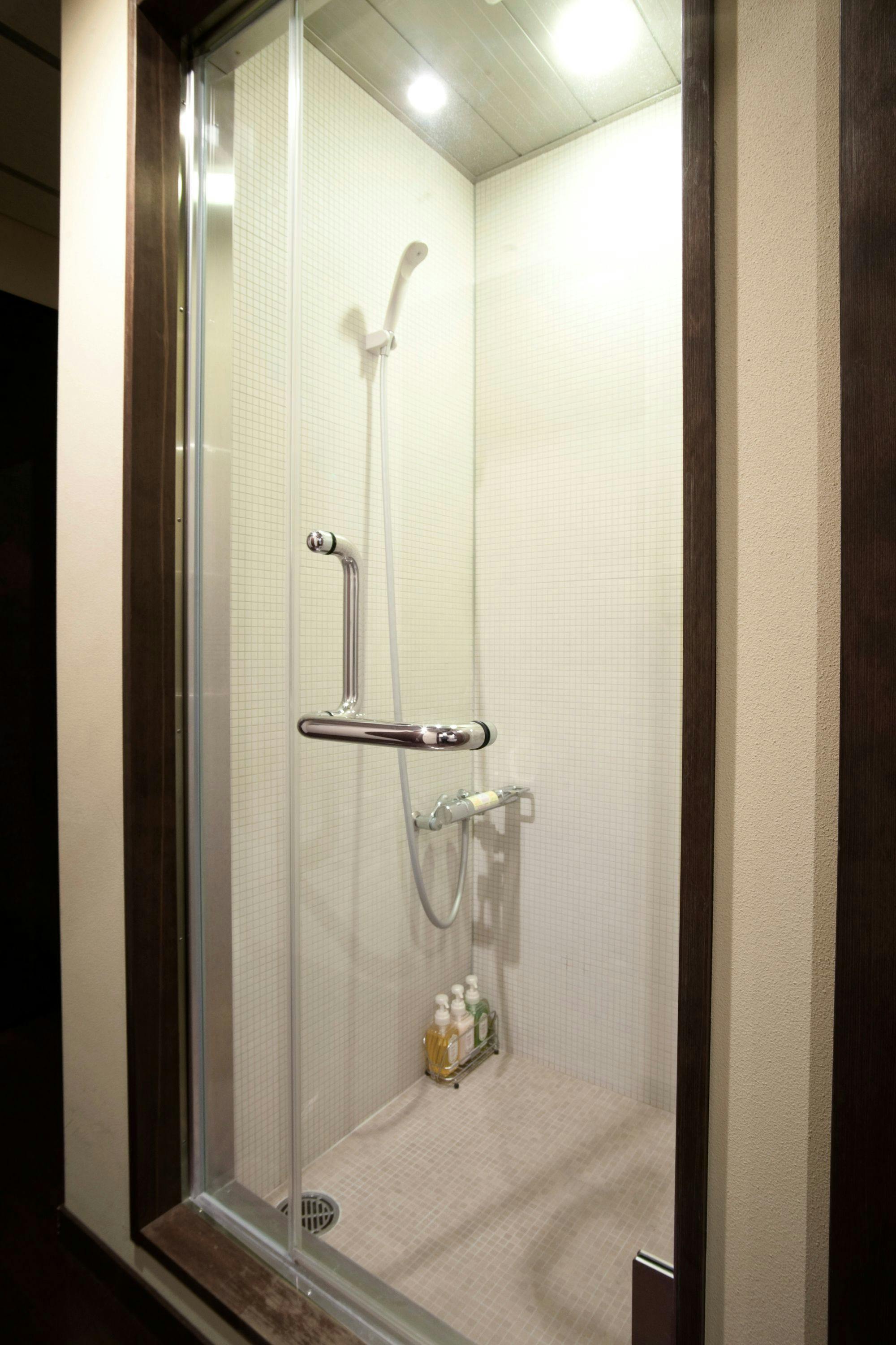 畳のお部屋にお布団でぐっすりお休みください。シャワーブース・トイレ(ウォシュレット)付。簡単な和朝食が無料サービス。27型液晶テレビ、有線LANによるインターネット接続無料。全館WI-FI対応!