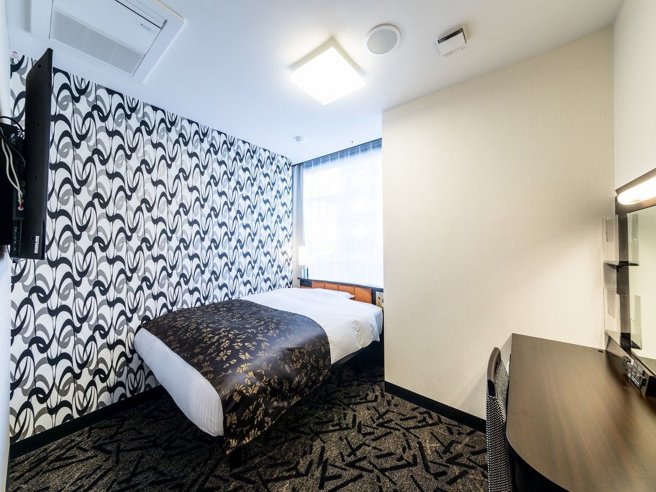 ・広さ14平米/ベッド幅120cm・40型液晶テレビ完備・Wi-Fi無料接続・インターネット有線LAN無料接続・快眠を追求したアパホテルオリジナルベッド「Cloud fit(クラウドフィット)」を導入・まくらとベッドとの相性を、科学的に検証を行い開発したアパホテルオリジナル「3Dメッシュまくら」・ふんわりやわらか高級羽毛布団(デュベ)・温水洗浄便座完備・全客室無料コーヒーメーカー(ドルチェグスト)導入