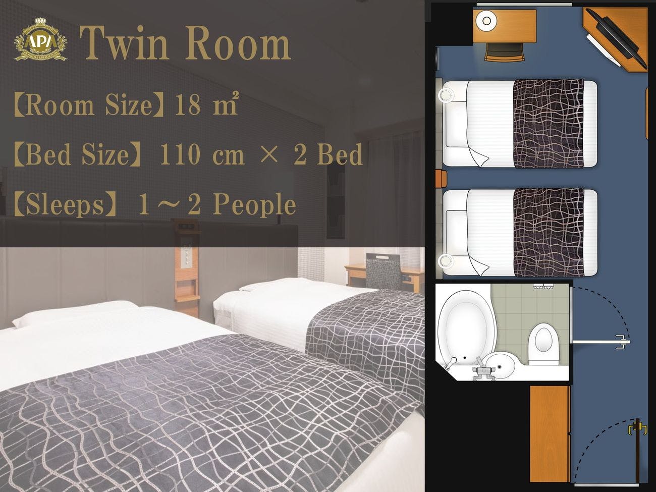 ・広さ18平米/ベッド幅110cm・40型液晶テレビ完備・Wi-Fi無料接続・インターネット有線LAN無料接続・快眠を追求したアパホテルオリジナルベッド「Cloud fit(クラウドフィット)」を導入・まくらとベッドとの相性を、科学的に検証を行い開発したアパホテルオリジナル「3Dメッシュまくら」・ふんわりやわらか高級羽毛布団(デュベ)・温水洗浄便座完備・全客室無料コーヒーメーカー(ドルチェグスト)導入