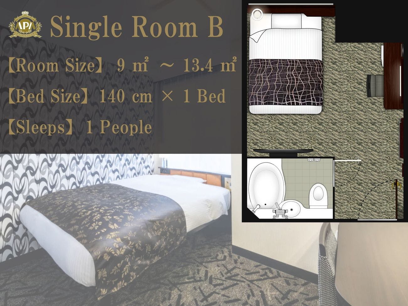 ・広さ14平米/ベッド幅140cm・40型液晶テレビ完備・Wi-Fi無料接続・インターネット有線LAN無料接続・快眠を追求したアパホテルオリジナルベッド「Cloud fit(クラウドフィット)」を導入・まくらとベッドとの相性を、科学的に検証を行い開発したアパホテルオリジナル「3Dメッシュまくら」・ふんわりやわらか高級羽毛布団(デュベ)・温水洗浄便座完備・全客室無料コーヒーメーカー(ドルチェグスト)導入