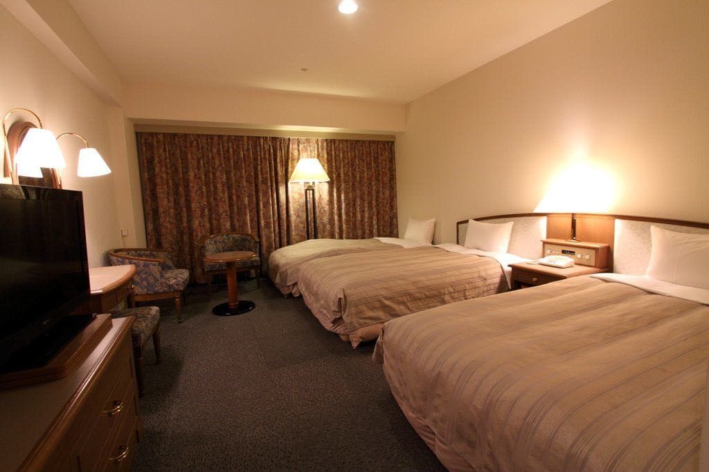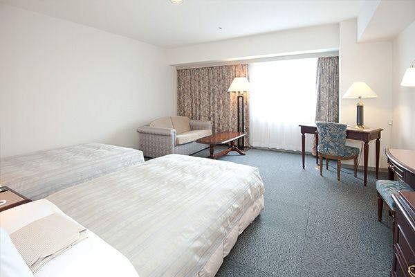 ●広さ25.9平米でゆったり寛ぎいただけるお部屋●ベッド1台はエキストラベッド●12階以上の高層階●インターネット接続無料(LAN対応・Wi-Fi対応)●温水洗浄トイレ・ズボンプレッサー完備●歯ブラシ、ヘアブラシ、カミソリ、綿棒などは1階ロビー内フリーアメニティコーナーに設置