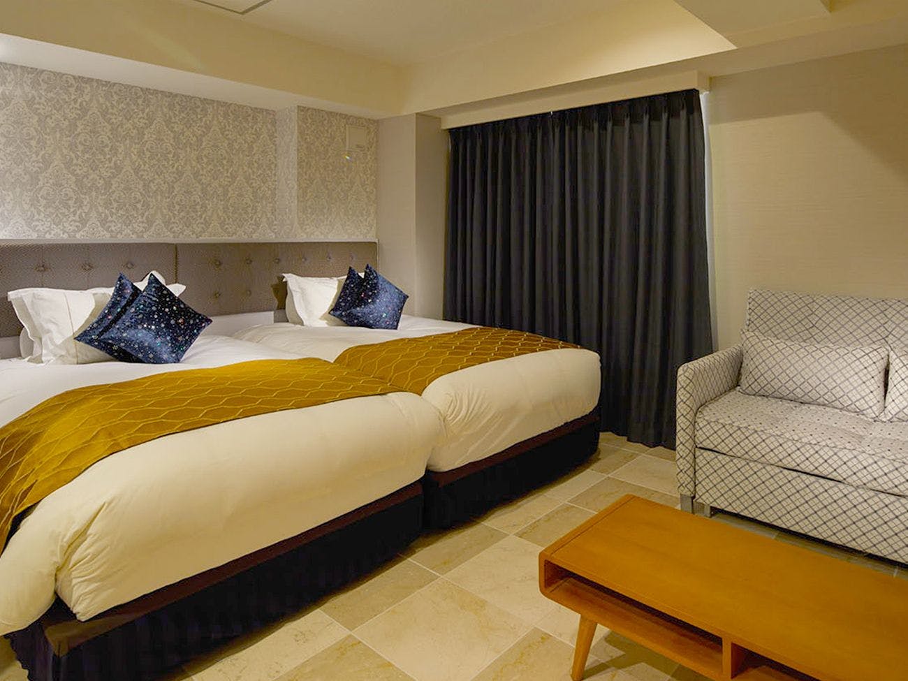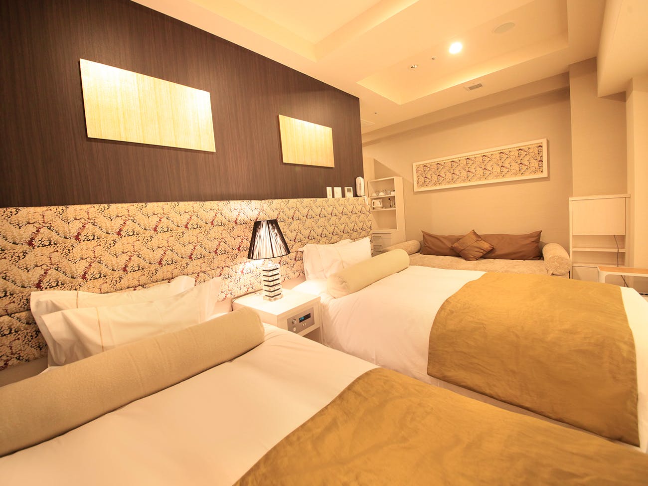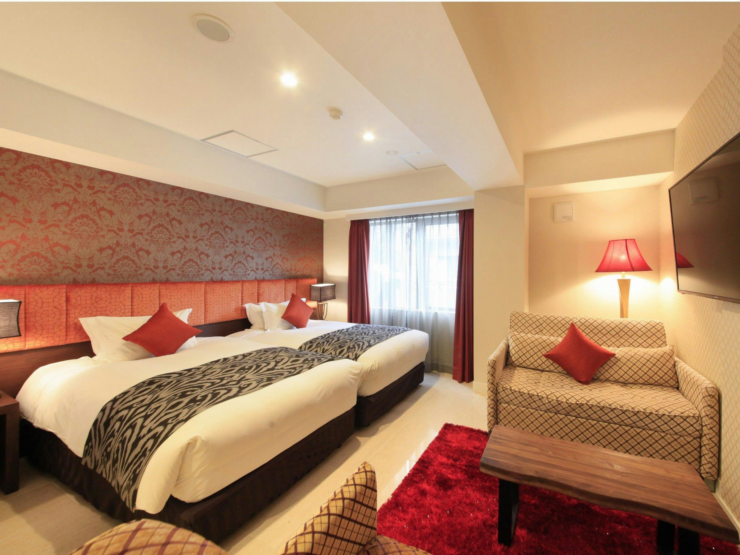 ■広さ約21平米~■フランスベッド社製セミダブルベッド2台 ソファーベッド1台■洗浄機付きトイレ■薄型液晶テレビ■Wi-Fi利用可(無料)■電話■冷蔵庫■金庫■空気清浄機(加湿機能付)■個別エアコン■電子ポット■ドライヤー※3名利用時はソファーベッドのご利用となります。
