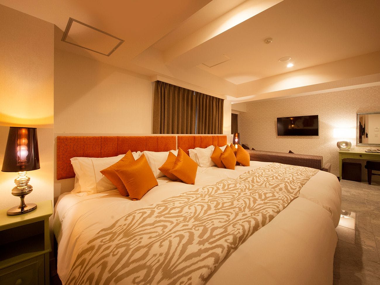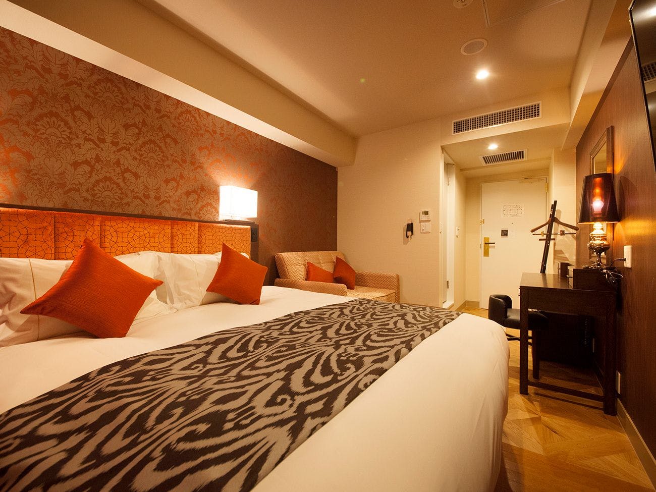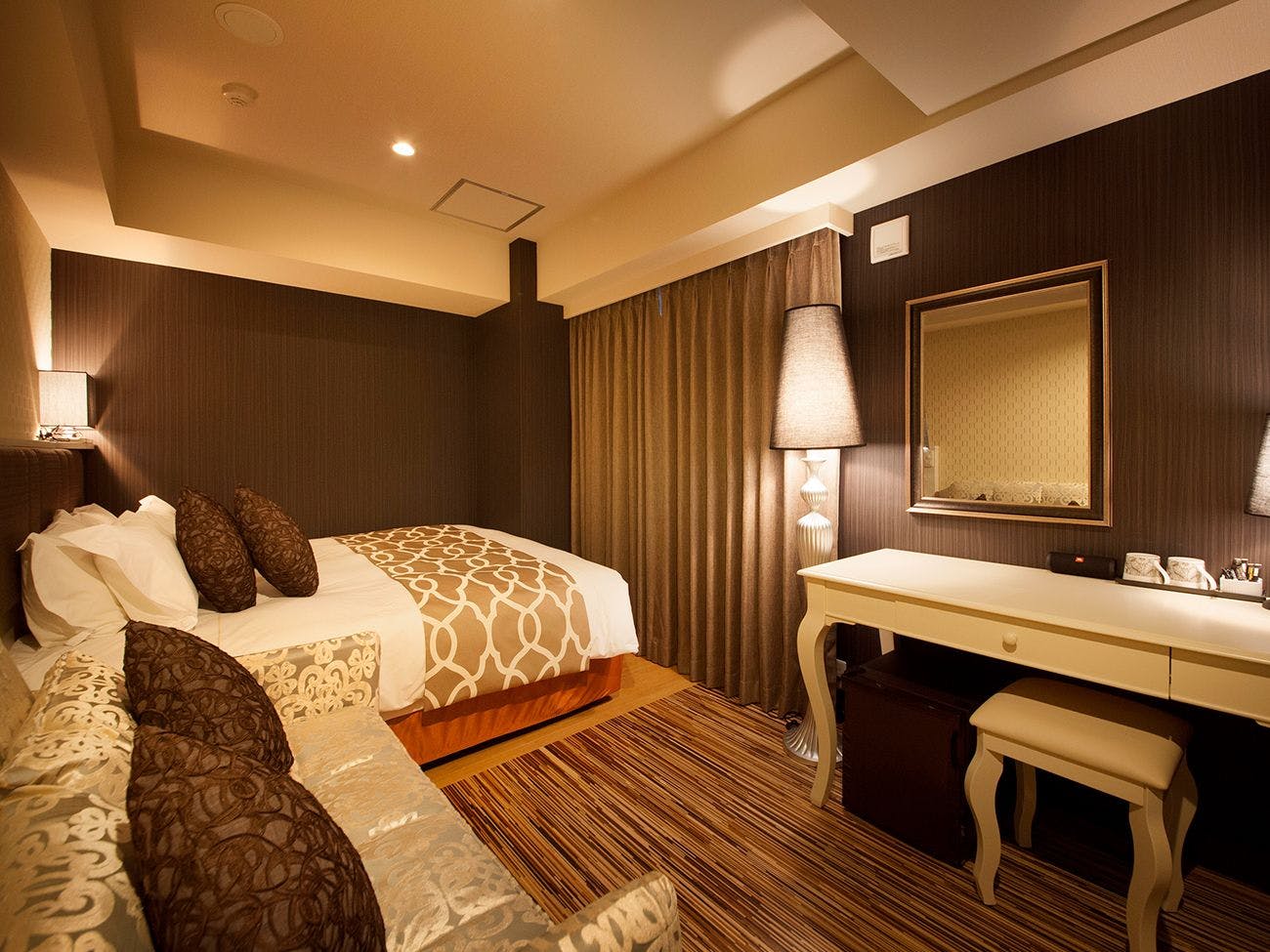 ■広さ約16平米~■フランスベッド社製キングベッド(180センチ×20センチ)■洗浄機付きトイレ■薄型液晶テレビ■Wi-Fi利用可(無料)■電話■冷蔵庫■金庫■空気清浄機(加湿機能付)■個別エアコン■電子ポット■ドライヤー■ソファー■テーブル