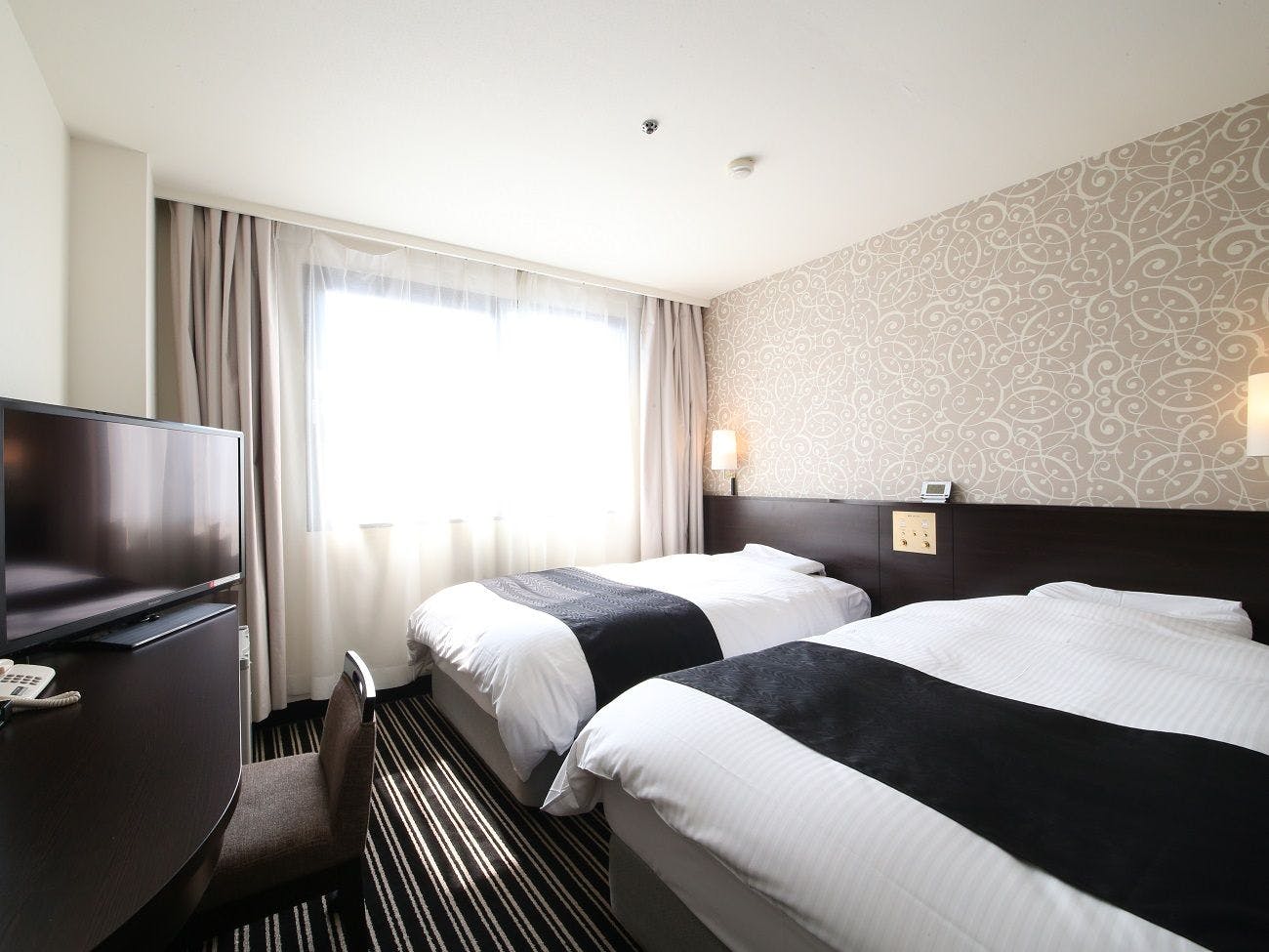 ■ベッドサイズ112cm×195cm×2台■大型液晶テレビ設置■Wi-Fi・有線LAN接続無料■VODアパルームシアター無料■BBCワールドニュース無料放映■除菌・消臭スプレー■空の冷蔵庫■高級羽毛布団(デュベ)■アパホテルオリジナルベッド「Cloud fit(クラウドフィット)」■温水洗浄便座