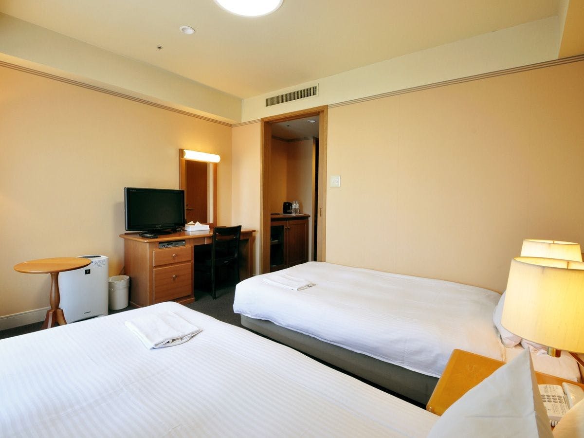 大きな窓からの自然あふれる眺望が魅力のツインルーム。ツインルームを1名様でご利用頂けるお部屋です。■26型液晶テレビ地デジ対応