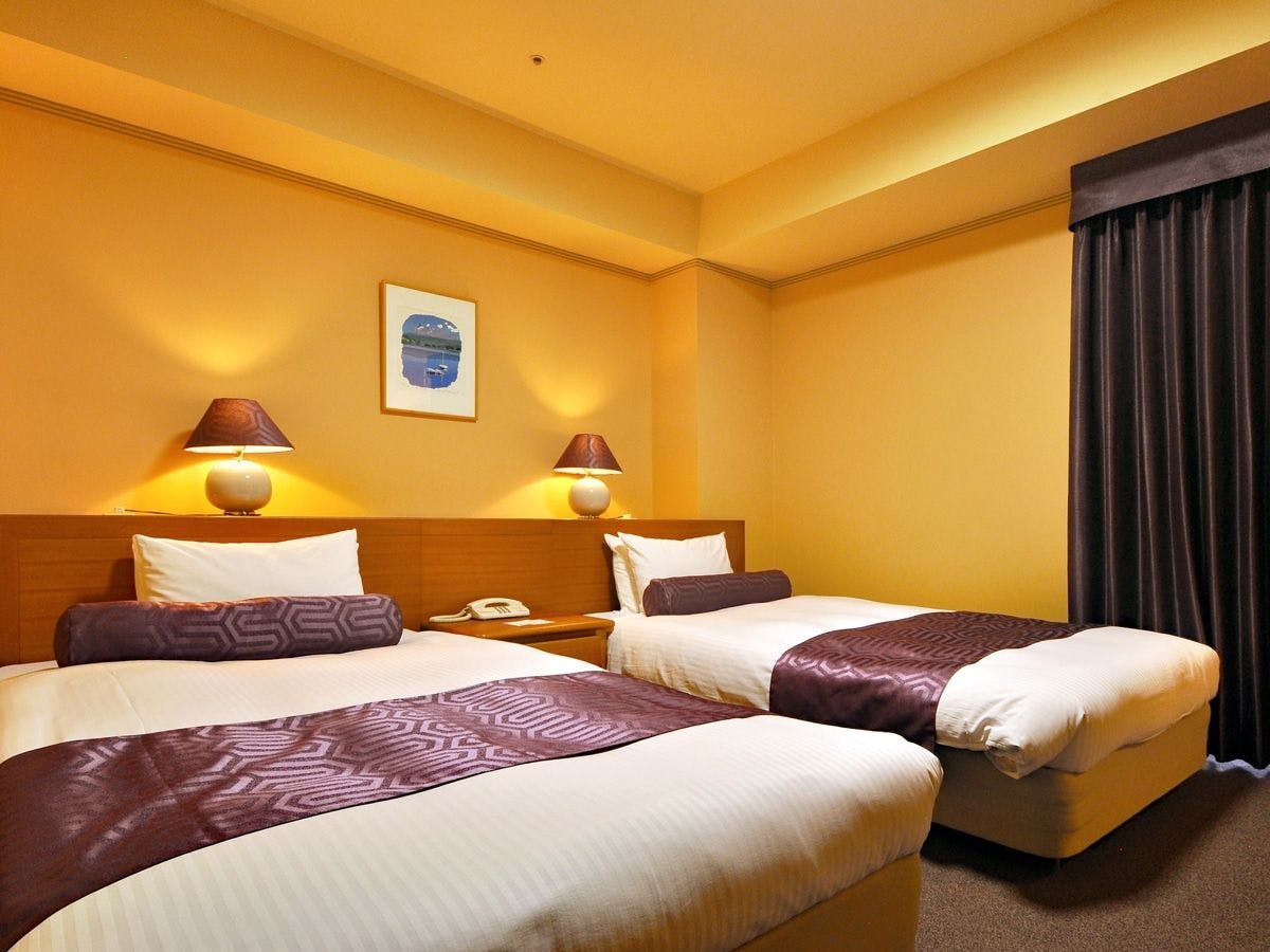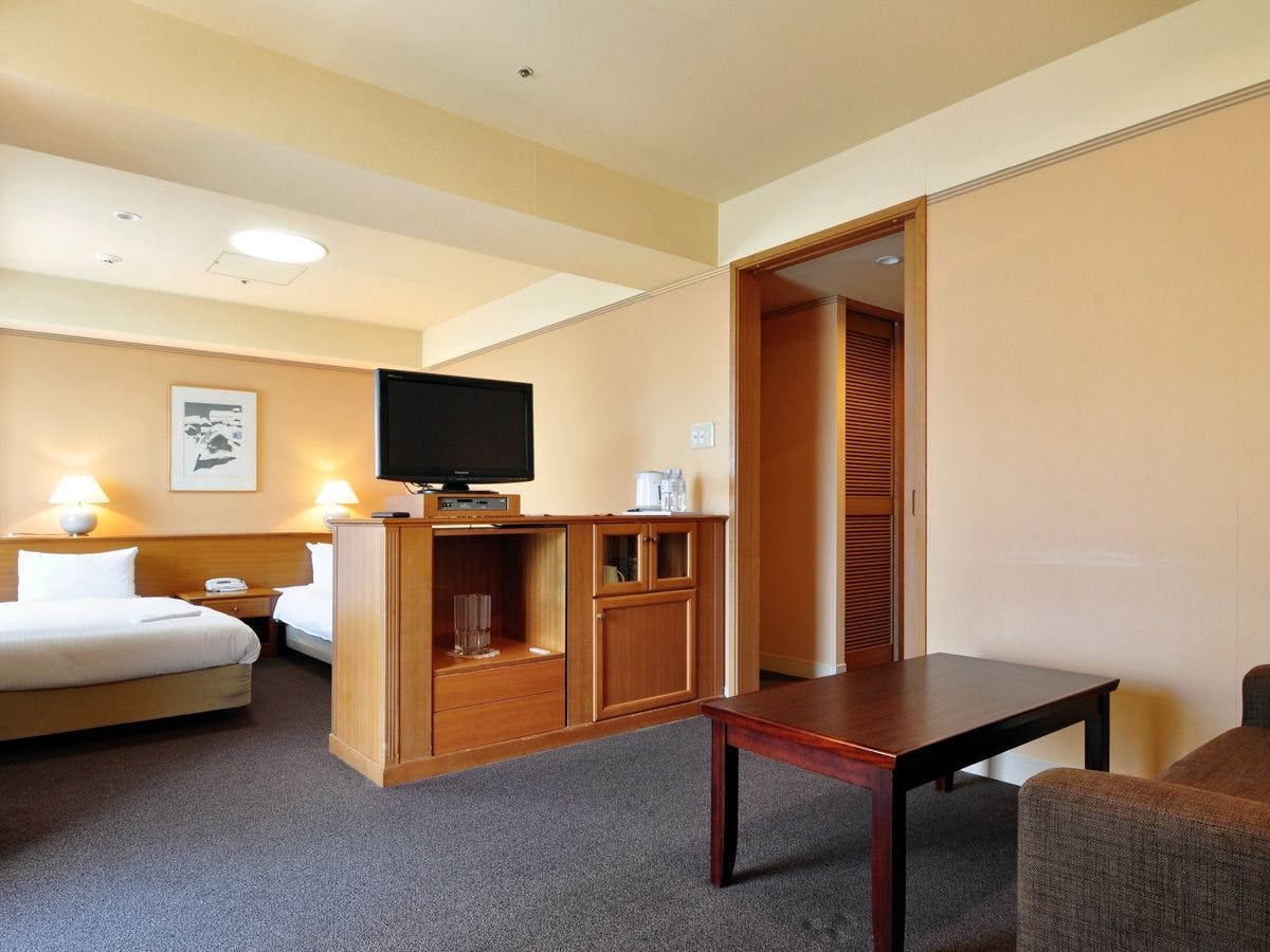 広々お寛ぎ頂けるラージツインルーム。※3名様利用時は、1台はソファベッドとなります。■26型液晶テレビ地デジ対応