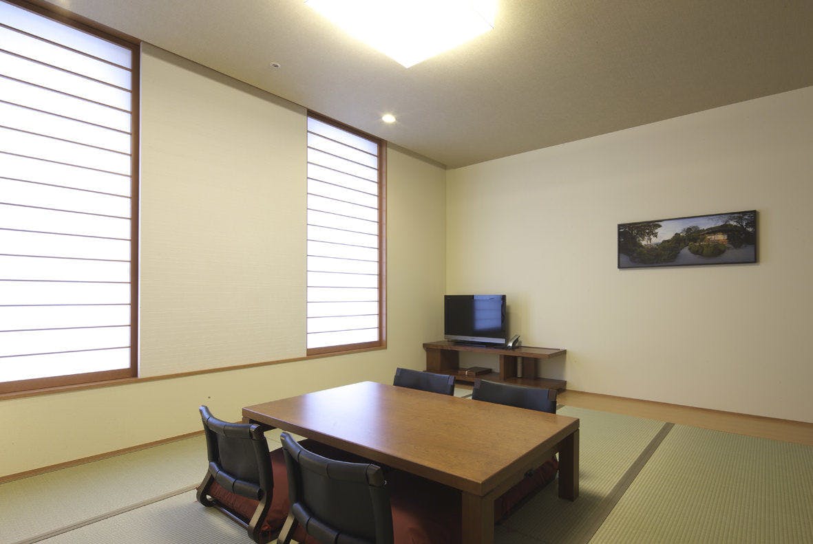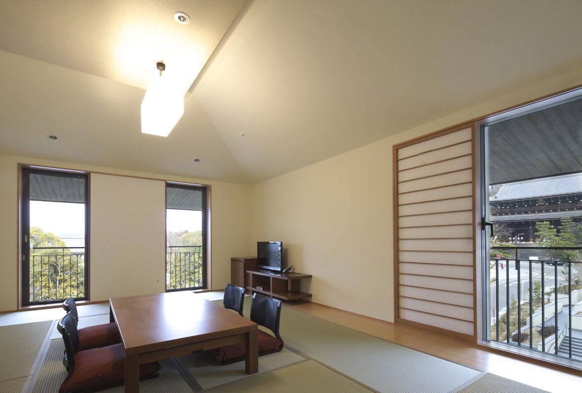 和順会館自慢の広々とした12畳の和室はご家族やお仲間での快適な滞在を約束いたします。客室階別棟に位置するデラックス和室は、きれいに整備された知恩院参道を見渡せる大変眺めの良いお部屋となっています。大人数でのご利用に最適な、独立した洗面所・浴室・トイレを完備した贅沢な造りのお部屋となっております。また客室には最新の設備に加えて、天然木の家具や高級羽毛布団などもご用意しております。※全室 WiFi御利用いただけます。