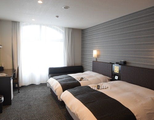 快適な睡眠を追及したベッド アパホテルオリジナルのCloudFit ベッド2台(幅125cm×1台1名・140cm×1台2名)が設置された客室です。