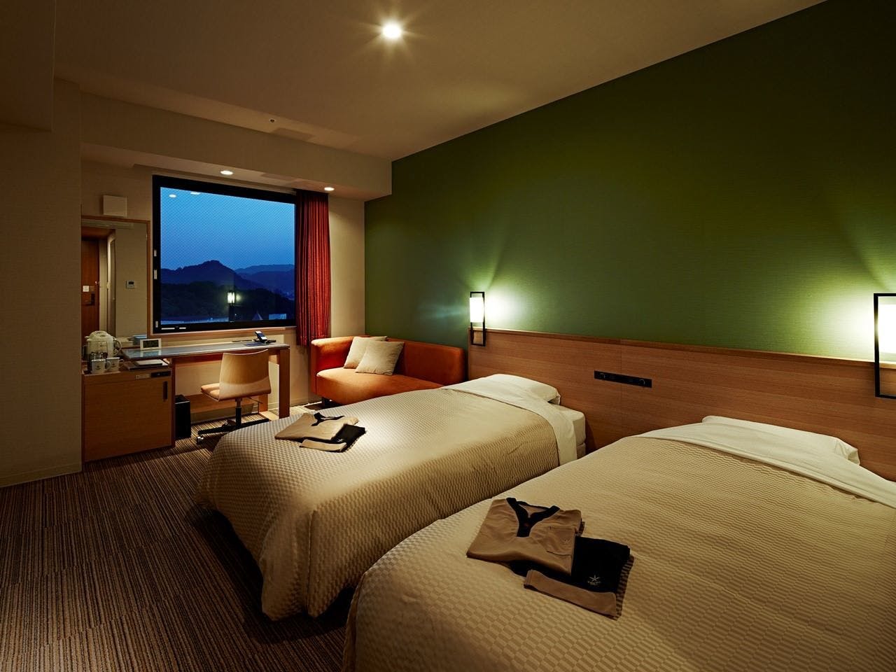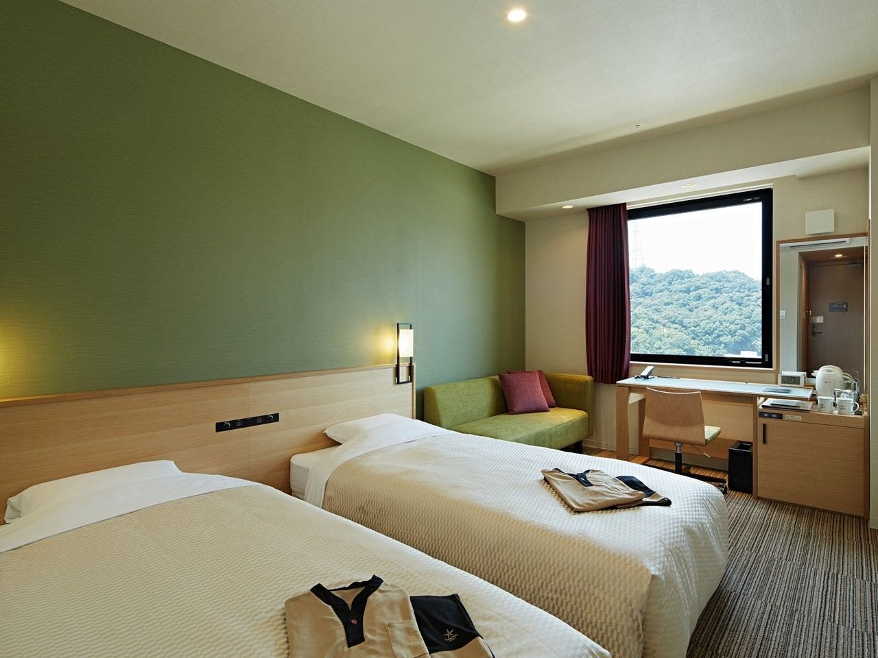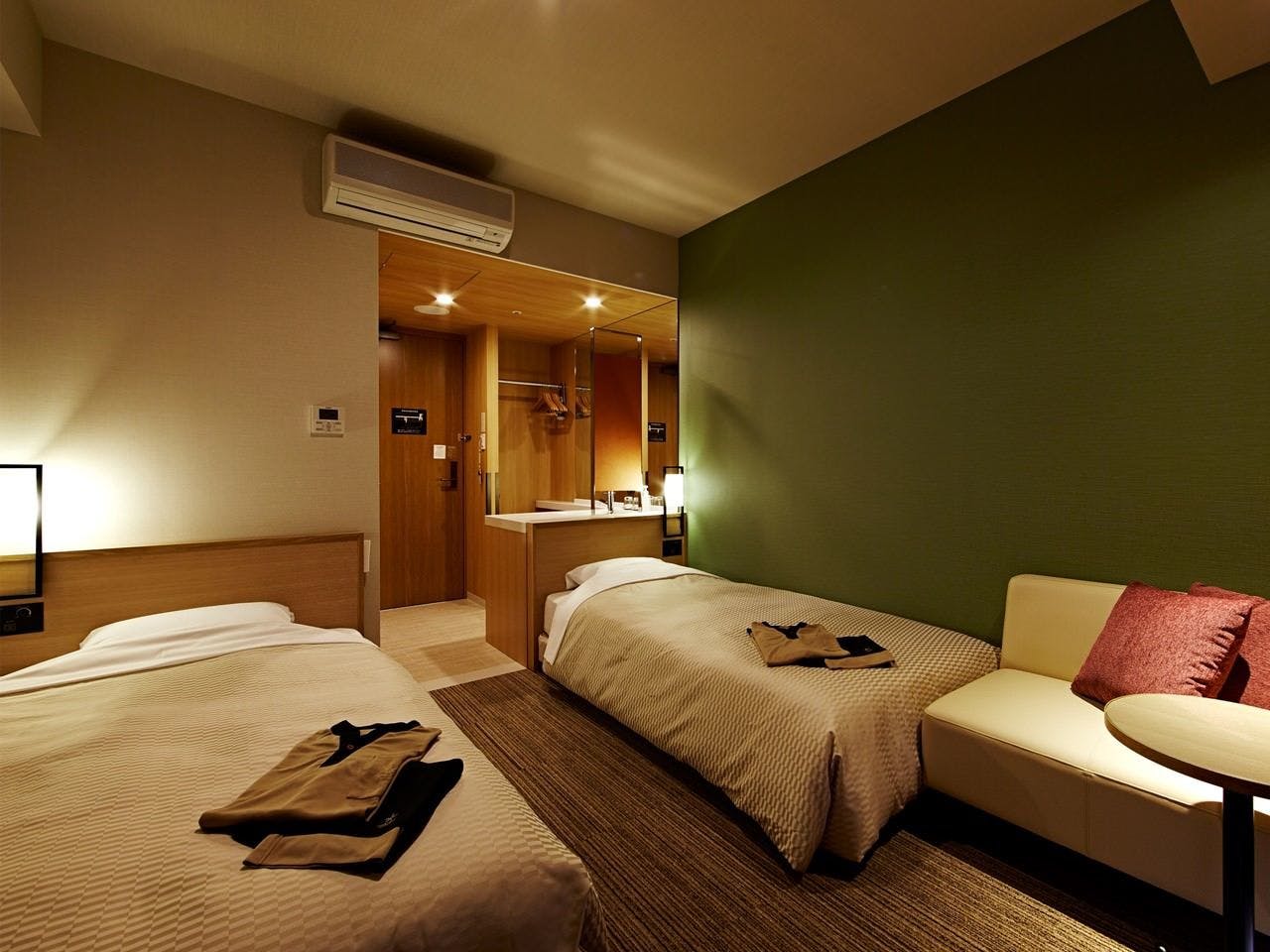 洋室/ツイン/ベッド幅110cm×1台/ベッド幅100cm×1台シャワーブースのみのご用意でお部屋をお広々お使い頂けます。