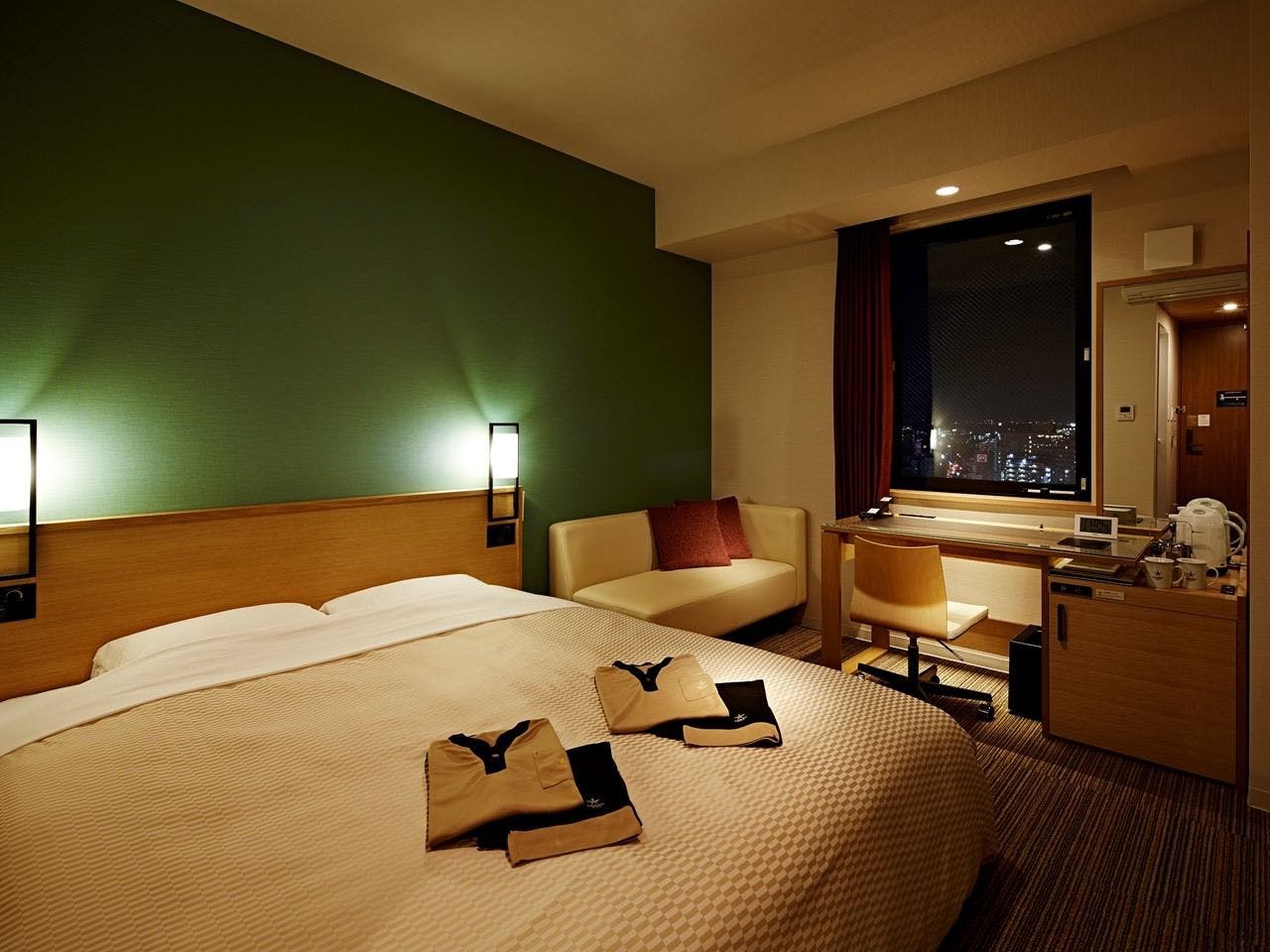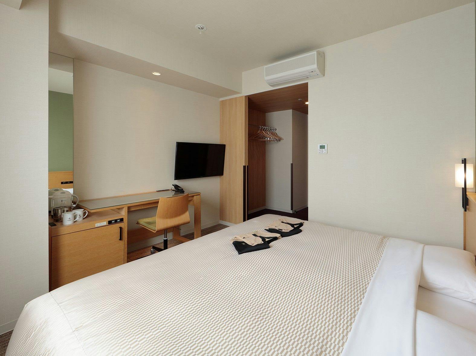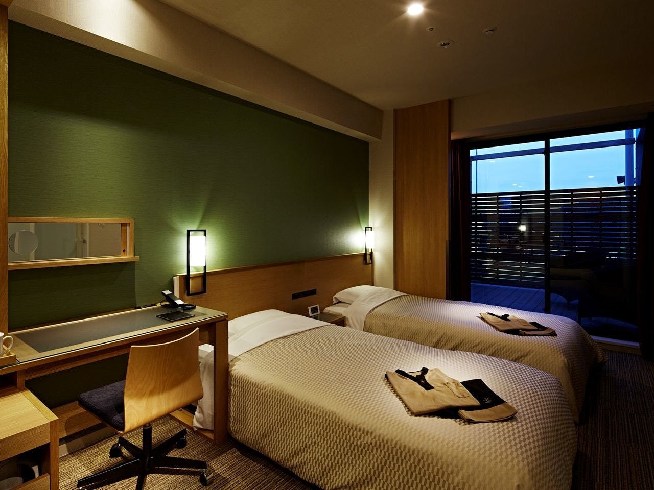 洋室/ツイン/ベッド幅110cm×1台/ベッド幅100cm×1台シャワーブースのみのご用意でお部屋をお広々お使い頂けます。