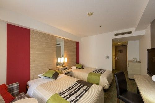 またツインベッドルームの1台のベッド幅130cmのゆったりとしたおくつろぎ、