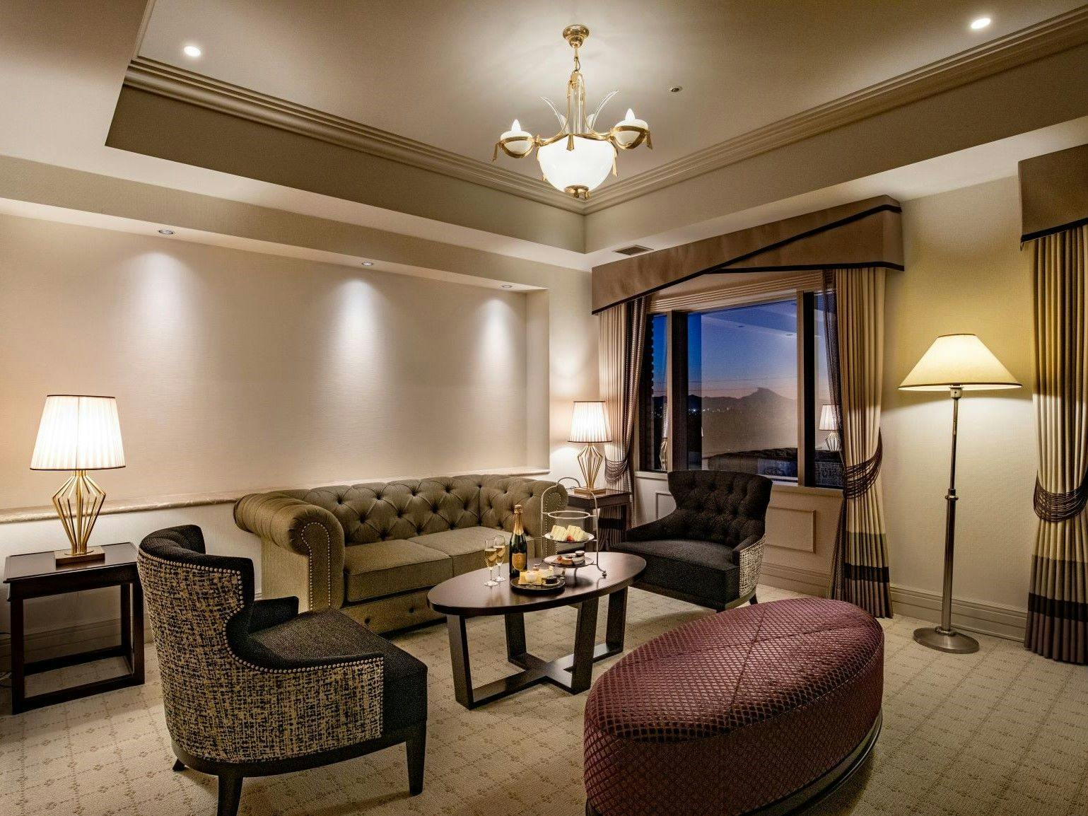 ホテル最上階6階のご用意となります。(全室禁煙)リビング・ミニカウンター完備、トイレ2ヶ所、ジャグジーバスにシャワーブースも完備。100平米の広々としたお部屋で、ご夫婦、カップルでごゆっくりお過ごしください。リビングルームにエキストラベッドを入室可能ですので、ご家族で団らんをお楽しみいただきながらお過ごしいただけます。
