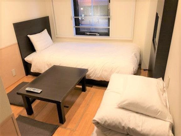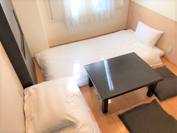寝具は1つのみでセミダブルサイズのベッドにお2人でご利用頂く場合がございます。