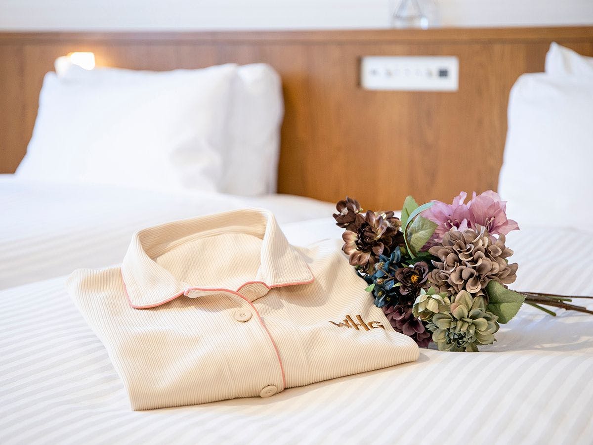 ナイトウェア、スリッパ、ミネラルウォーター