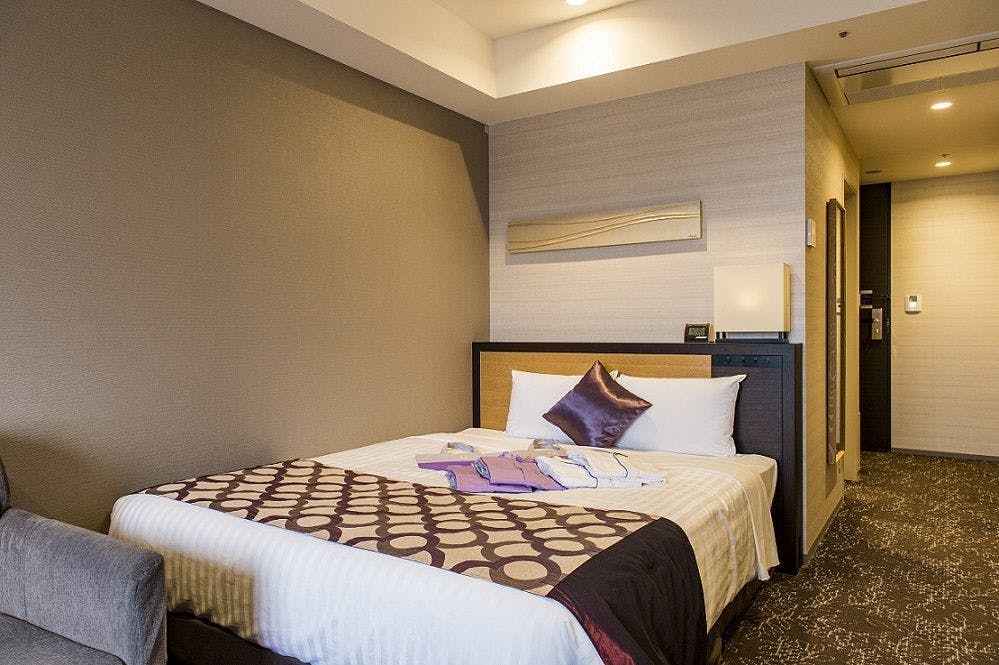 おふたりの想い出を演出するダブルルーム。広々としたベッドでお休みになれます。健康増進法の改正に伴い、喫煙部屋でのお子様の添寝・20歳未満の方のご利用はできかねます。