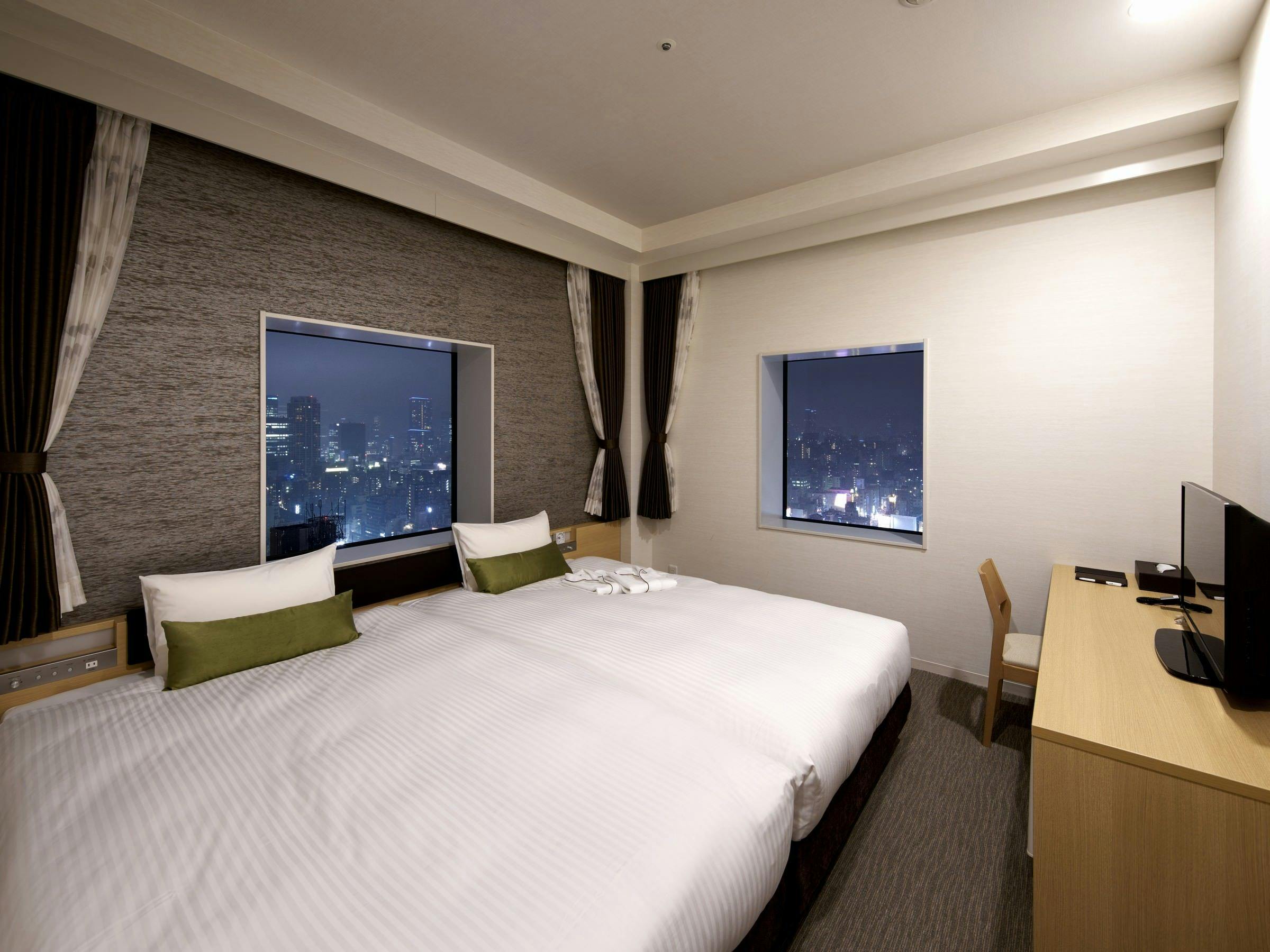 高層階の客室から、東京の景色が一望できます。広々としたゆとりのスペースを備えており、快適なホテルステイをお約束いたします。ダブルサイズ(幅140cm)のベッドで、ゆったりとお寛ぎください。