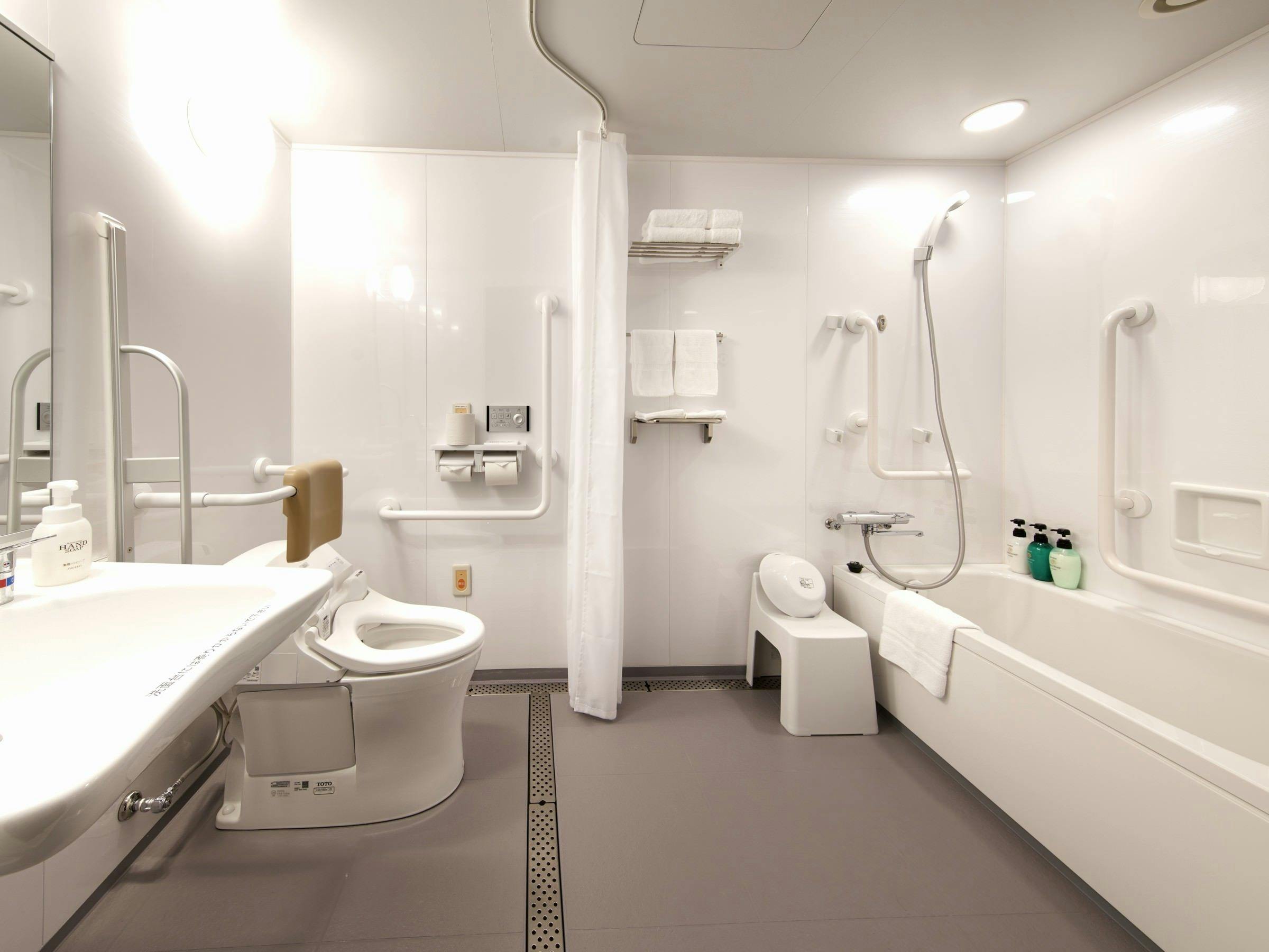 バリアフリー対応のユニットバスを採用した客室で、お身体の不自由な方も安心してご利用頂けます。幅120cmと110cmのベッド各1台を備えております。