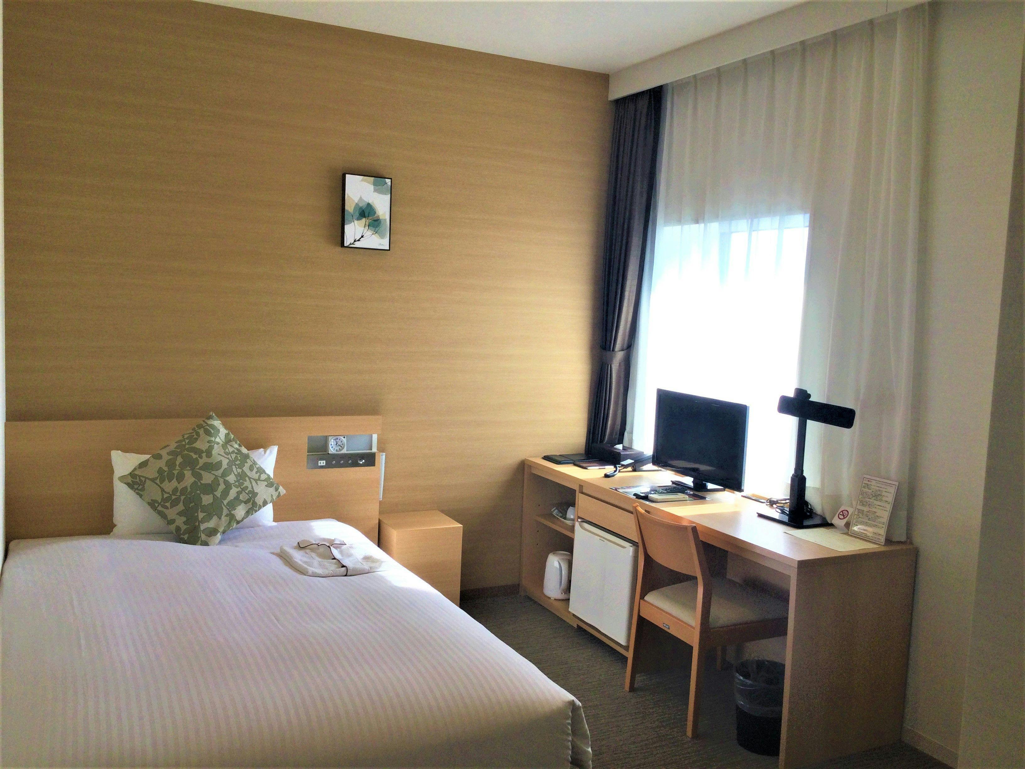 高層階の客室から、東京の景色が一望できます。機能性を重視したコンパクトなシングルルームは、ビジネスにもおすすめです。セミダブルサイズ(幅120cm)のベッドで、ゆったりお寛ぎください。