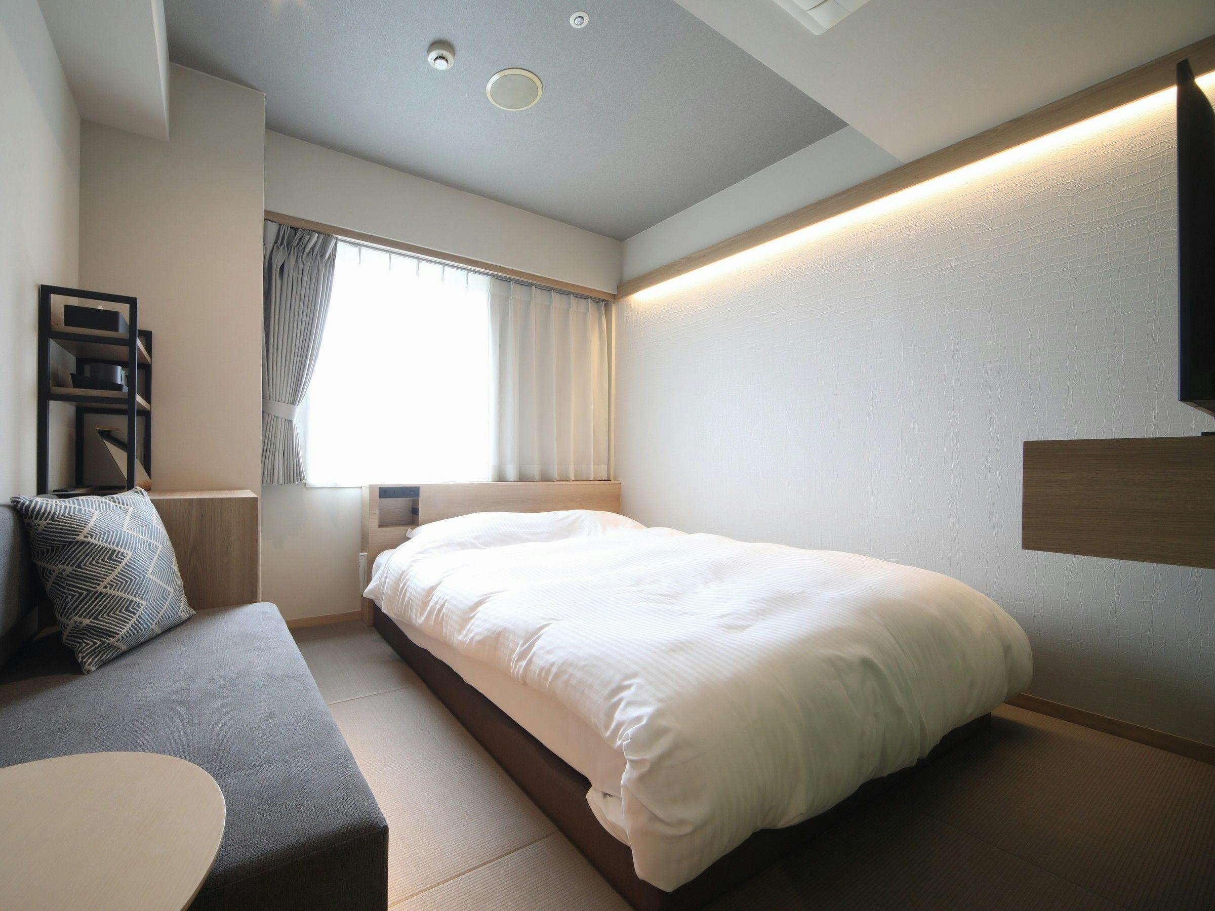 スタイリッシュなインテリア、デザイン性を重視したゆとりある空間。リビングスペースにはカウチソファを設置し、落ち着きある色調の小上がりベッドルームは、清潔感とくつろぎをより一層感じさせてくれます。大切な人との想い出の時間を贅沢にお過ごしください。マットレスは全米No.1シェアを誇るシーリー社製を採用し、世界最高水準と言われる寝心地の良さを体感ください。マットレスを追加して最大3名様までご利用いただけます。