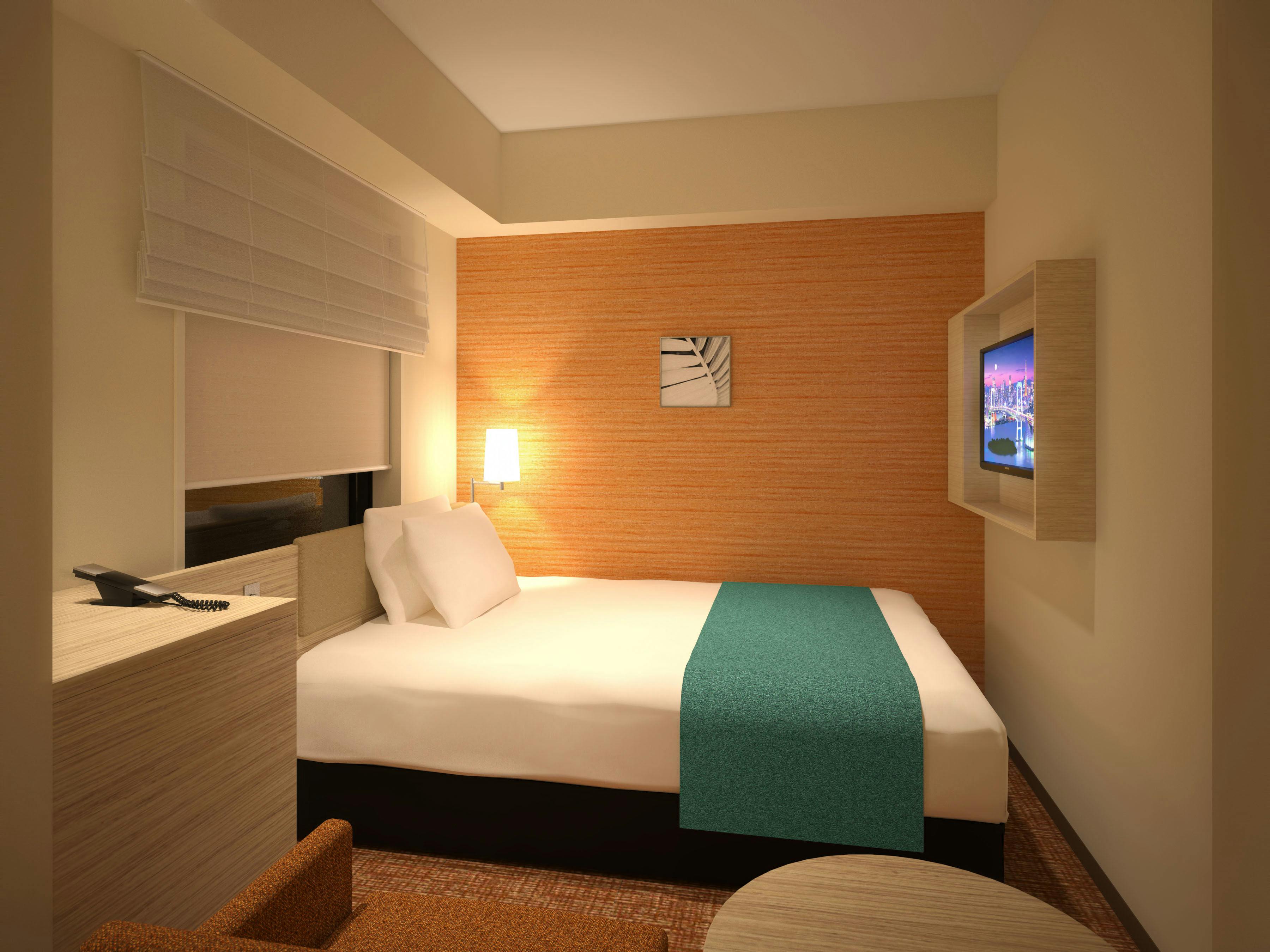 ■デスクタイプの部屋■PC作業や書き物に便利!!・幅140センチのセミダブルベッド(シモンズ社製)・液晶テレビ 32インチ・温度調節可能な個別空調・加湿空気清浄機も全部屋完備・Wi-Fi無料/有線LANにも対応・1泊1,000円で視聴可能なVOD(有料放送)・1Fロビーに選べるアメニティバイキング※丸テーブル付きのお部屋は【EX】です。