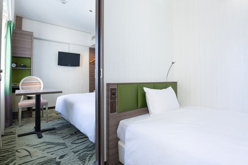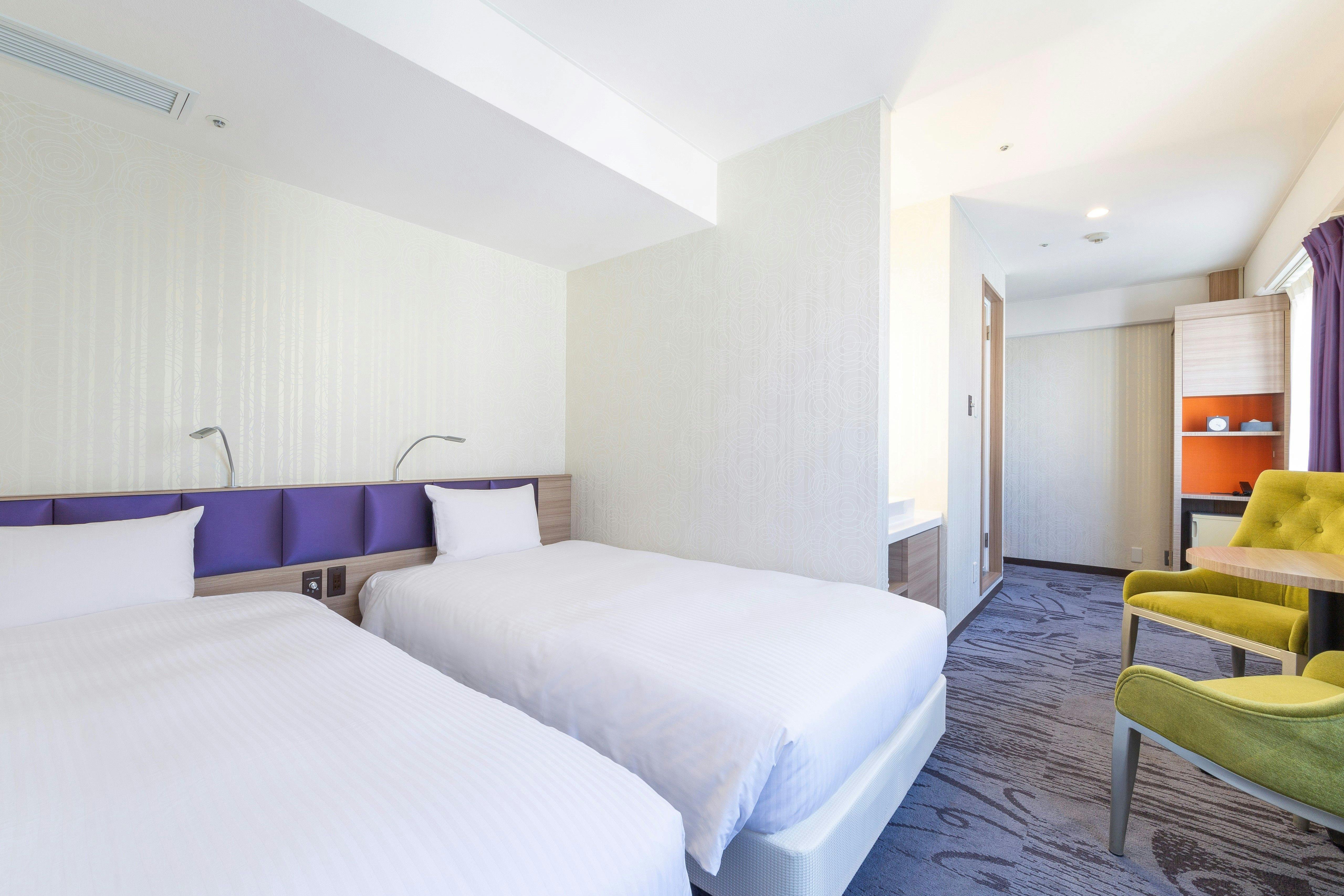 圧迫感を感じさせないシンプルな家具とモダンなインテリアのカジュアルツインルーム。