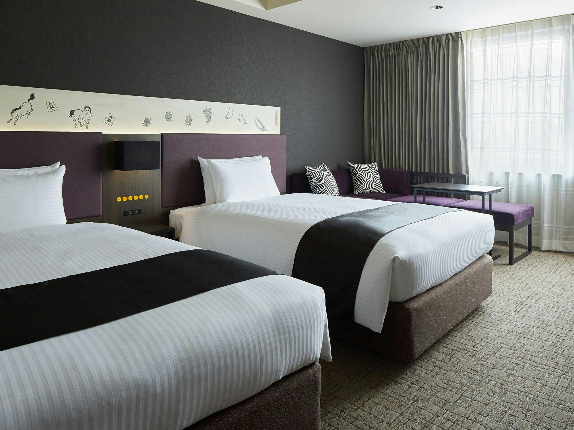 都会の景色を眺めながら、旅の思い出話に花を咲かせて。充実のホテルライフをお約束する、スタンダードなツインルームです。