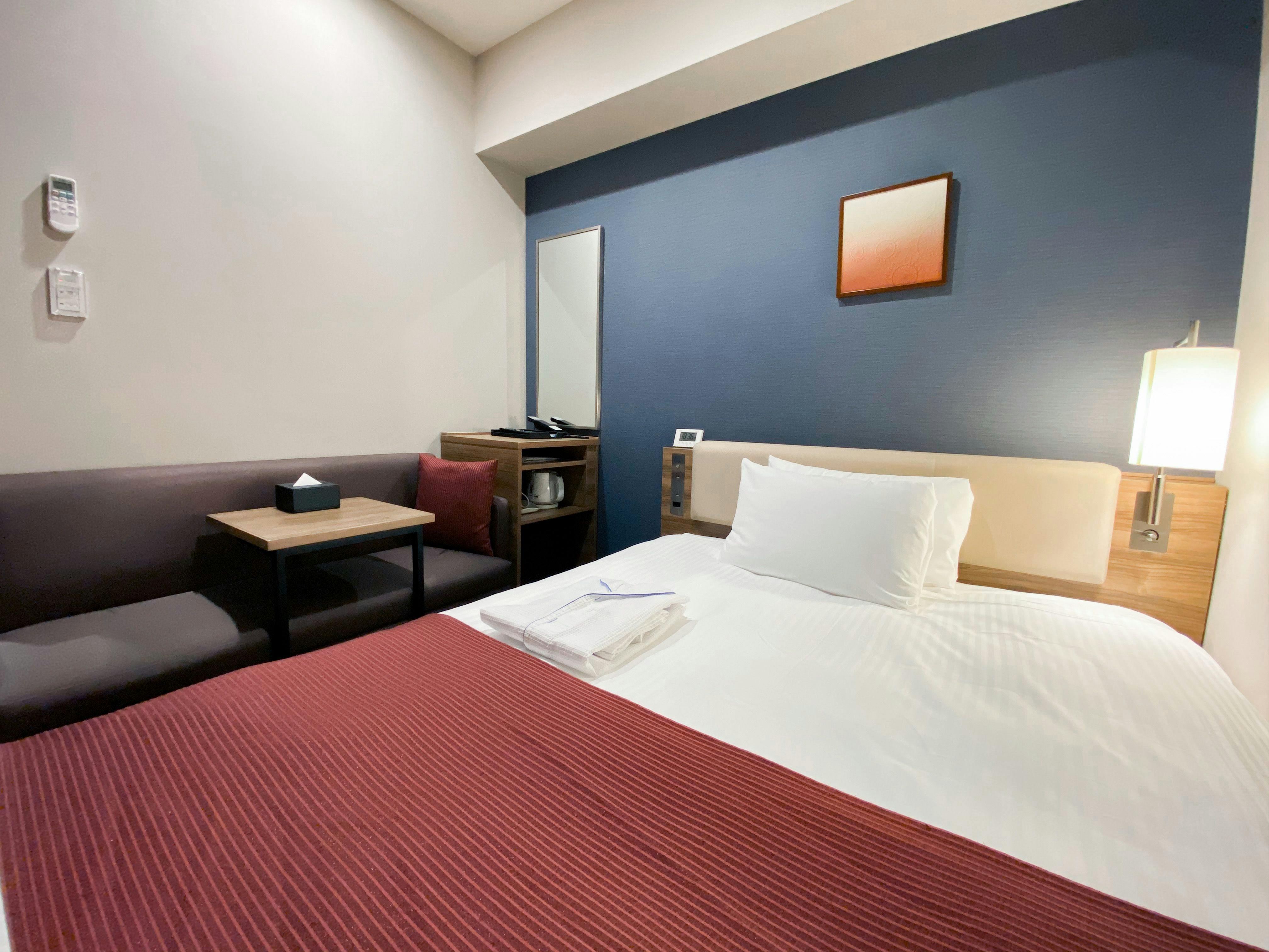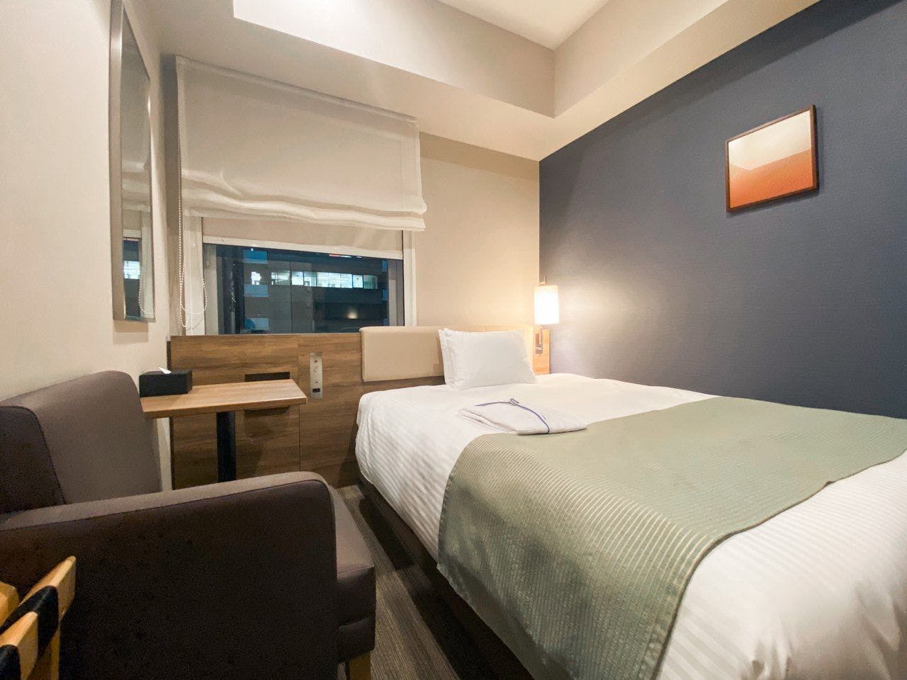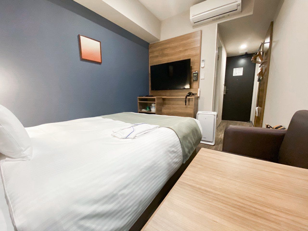 使い勝手の良いロングデスク付きのセミダブルルーム【約12平米】
