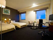 25.6平米の広さのデラックスツインルーム。120cmと110cmベッドをご用意。120cm幅のベッドですのでお子様の添い寝も可能です。ファミリーでのご宿泊にご利用ください。