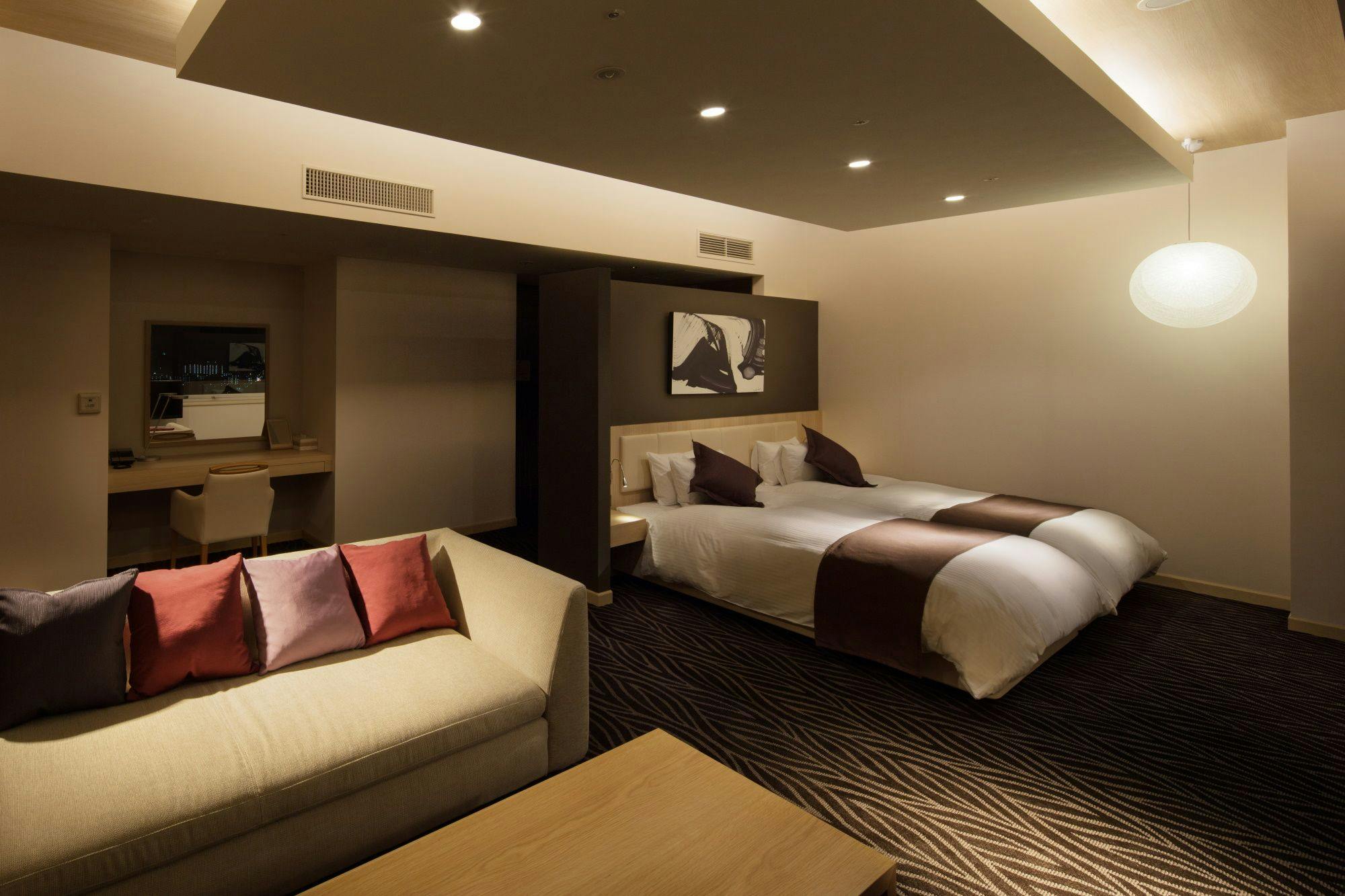 最上階ラグジュアリーフロアに50平米の広さを誇るエグゼクティブツイン。一面ガラス張りのお部屋からの眺めは格別。バスルームにはジェットバスを完備。このフロアのみエアウィーヴマットレス・ピローをご用意。