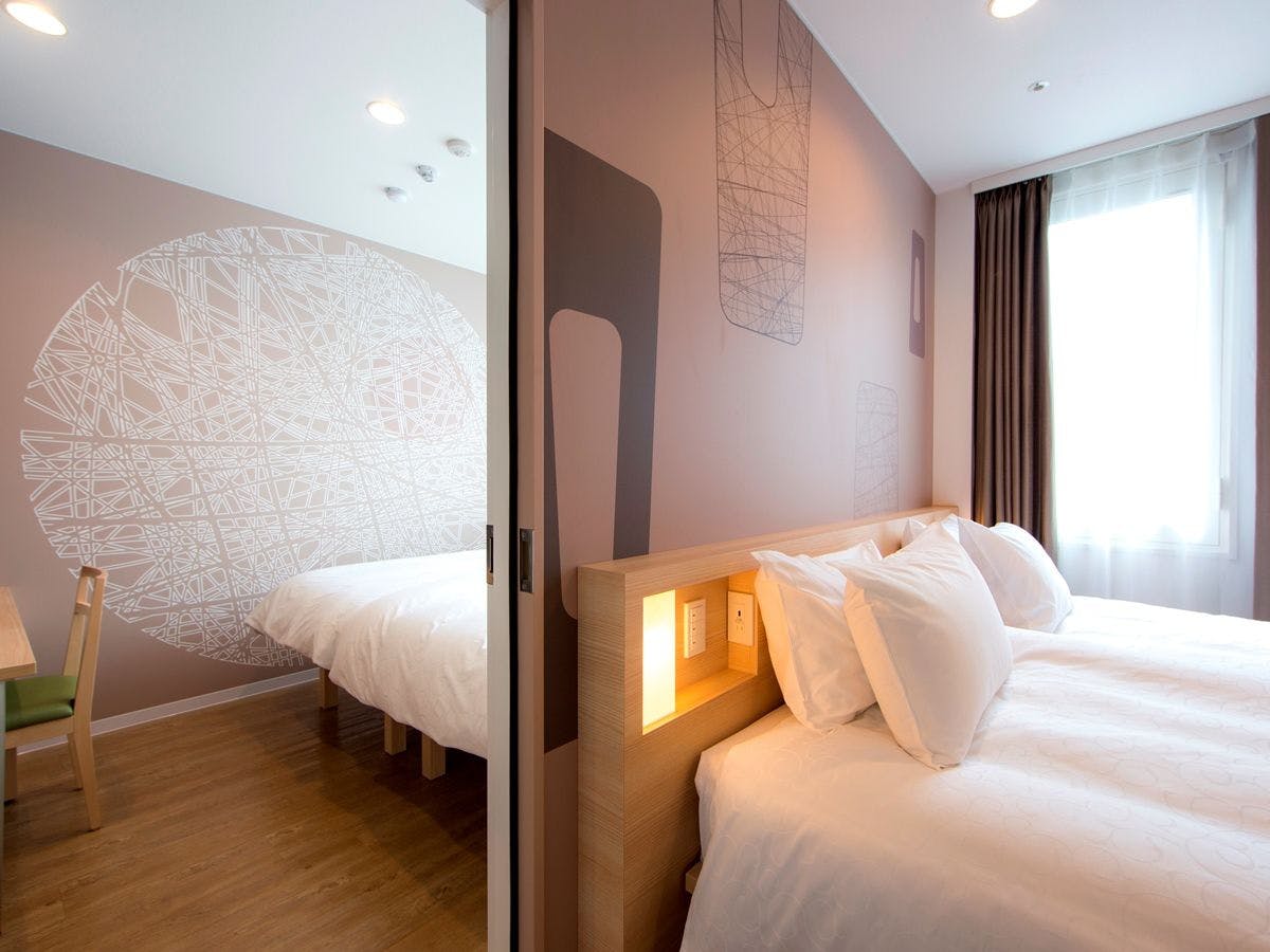 ハリウッドツイン2室が内扉で繋がった客室です。バス・トイレ2か所あり、ご家族やお友達とのグループ旅行に最適です。