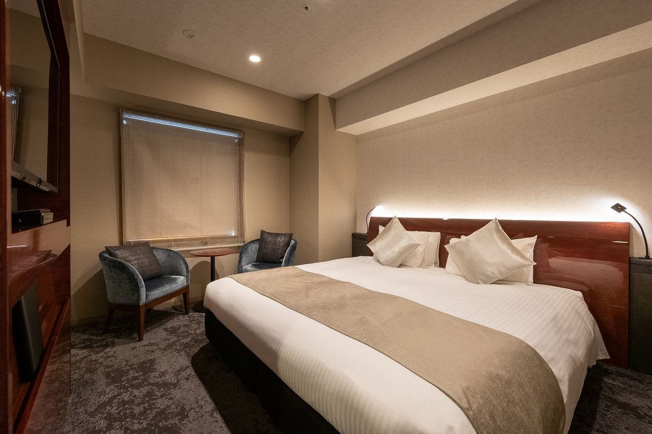 <モデレートダブルルーム シングルユース>【広さ】21平米【ベッドサイズ】154cm×203cm【バスルーム】セパレートバスルーム【お部屋の設備】■各社対応携帯電話充電器■インターネット接続無料(有線LAN・無線LAN対応可)■40型液晶テレビ■コルビー社製ズボンプレッサー設置■電気ポット■加湿機能付き空気清浄機■暖房便座付きシャワートイレ
