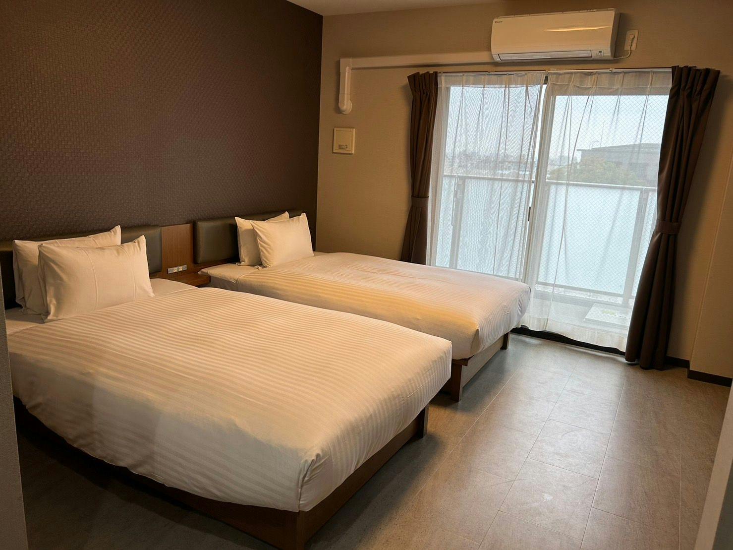 簡易キッチン付、バストイレがセパレートされた広々ご利用いただけるツインのお部屋となっております。ベッドは120cm幅のセミダブルベッドが2台設置されております。(エキストラベッド等のご用意はございません。予めご了承ください。)