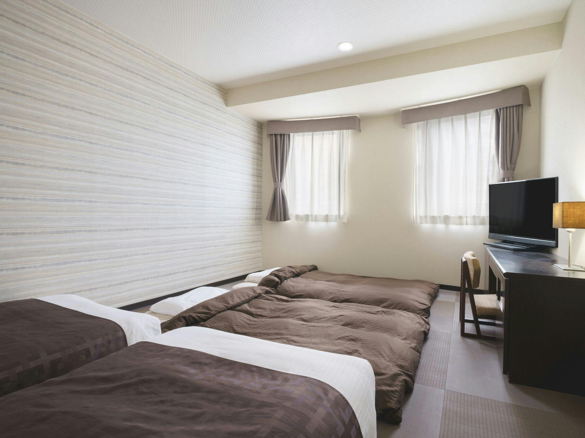【基本はローベッド2台、布団2組で最大4名様でのご利用が可能です。】・全室冷蔵庫・バス・抗菌シャワートイレ完備・高速回線インターネット接続無料 有線・無線LAN(WiFi)・地デジ対応液晶テレビ(BS対応)、有料CS放送 ・加湿空気清浄機、スタンドミラー&ドライヤー完備