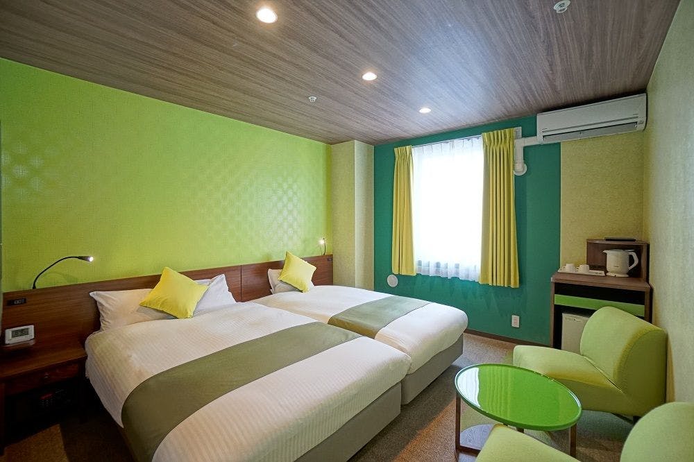 ワイドシングルベッド2台(110センチ幅)、ユニットタイプ。無料のWi-Fi。2名様まで添い寝可(未就学児まで)