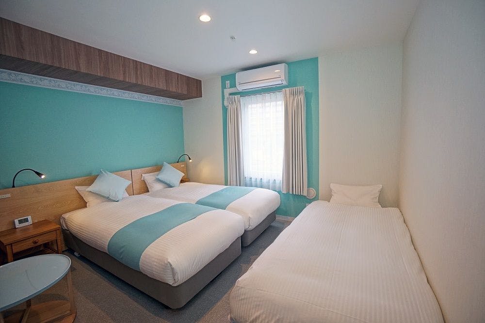 シングルベッド2台+ソファベッド1台、ハリウッドツインとして利用可。洗い場付きのバスルーム(洗面台、トイレ別)。1名様まで添い寝可(未就学児まで)。