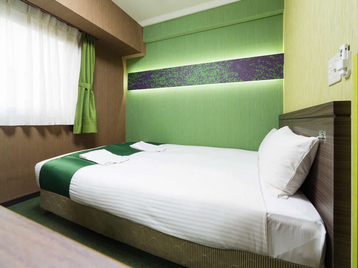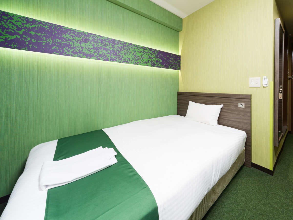 ●客室の広さ 12.4平米 ●ベッドの大きさ 140cm×195cm(セミダブルサイズ)●温水洗浄機能付トイレ●地上デジタル/BS対応液晶テレビ●インターネット有線LAN接続(LANケーブル完備)●全室Wi-Fi接続可能●マイナスイオンドライヤー・冷蔵庫を完備