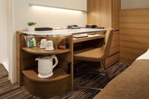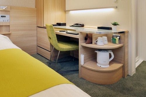 ・「ブラウン」「グリーン」の2タイプの客室をご用意しました・全室140センチ幅のダブルベッド、デュベスタイルを採用~お1人でゆったりと贅沢にくつろげます~・全客室にセーフティーボックス完備・インターネット接続無料(無線・有線LAN)