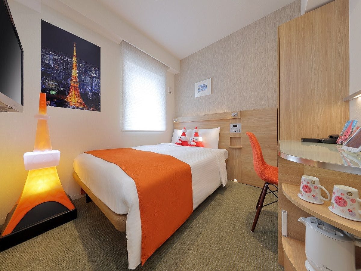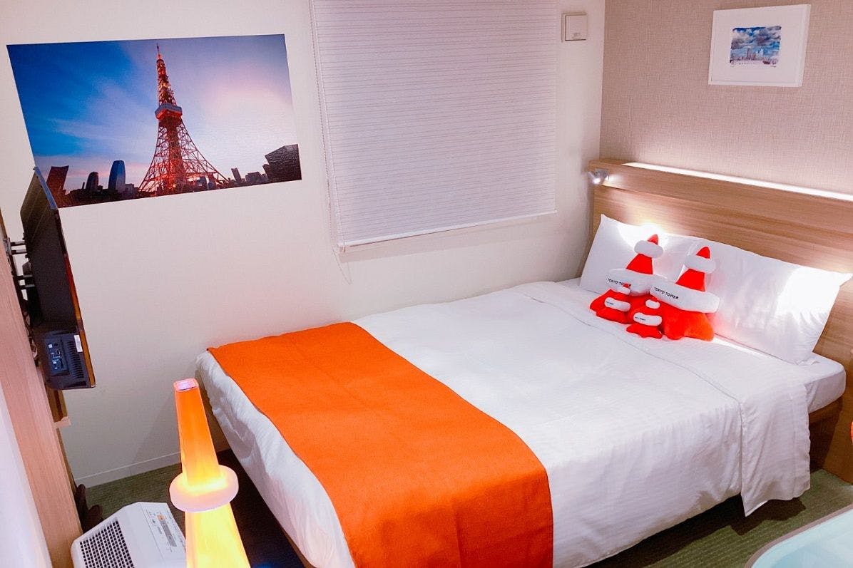 お部屋は明るいオレンジ色をコンセプトお部屋の照明を落として、東京TOWERライトでロマンチックなムードにチェンジすることもできます。