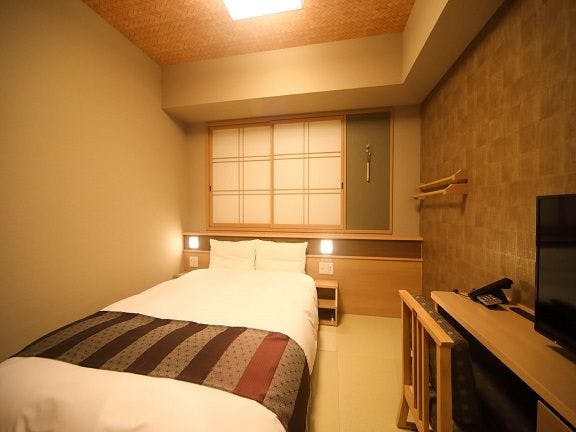 15.6平米/シャワー・トイレ付■客室内はお寛ぎ頂ける畳敷きにてご用意■サータ社製ベッド(120cm×195cm)■Wi-Fi完備