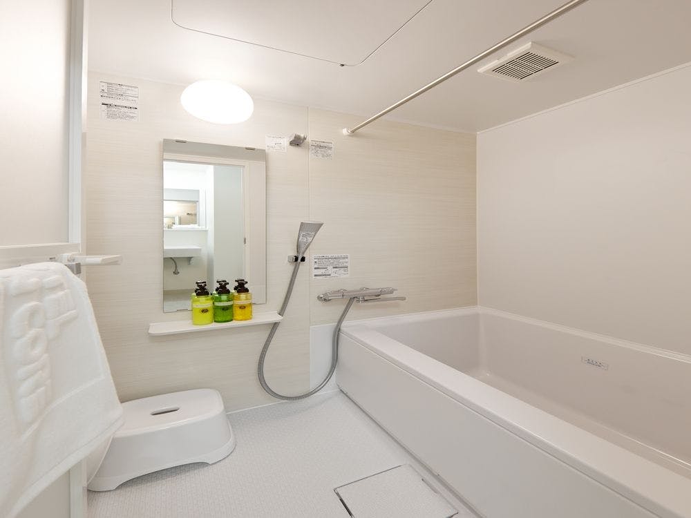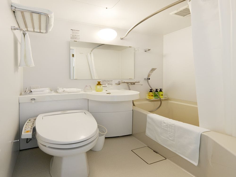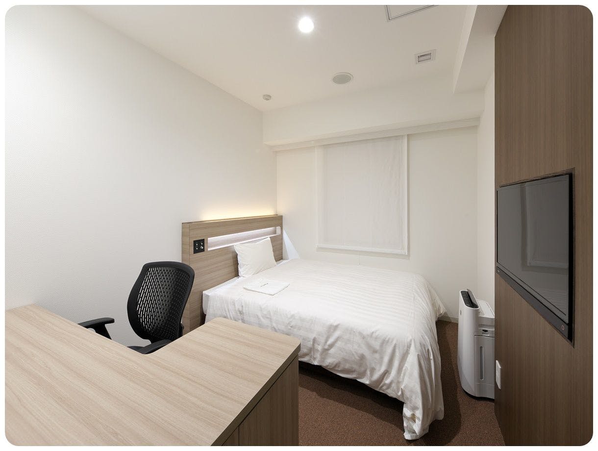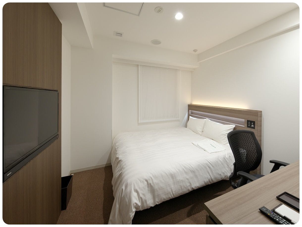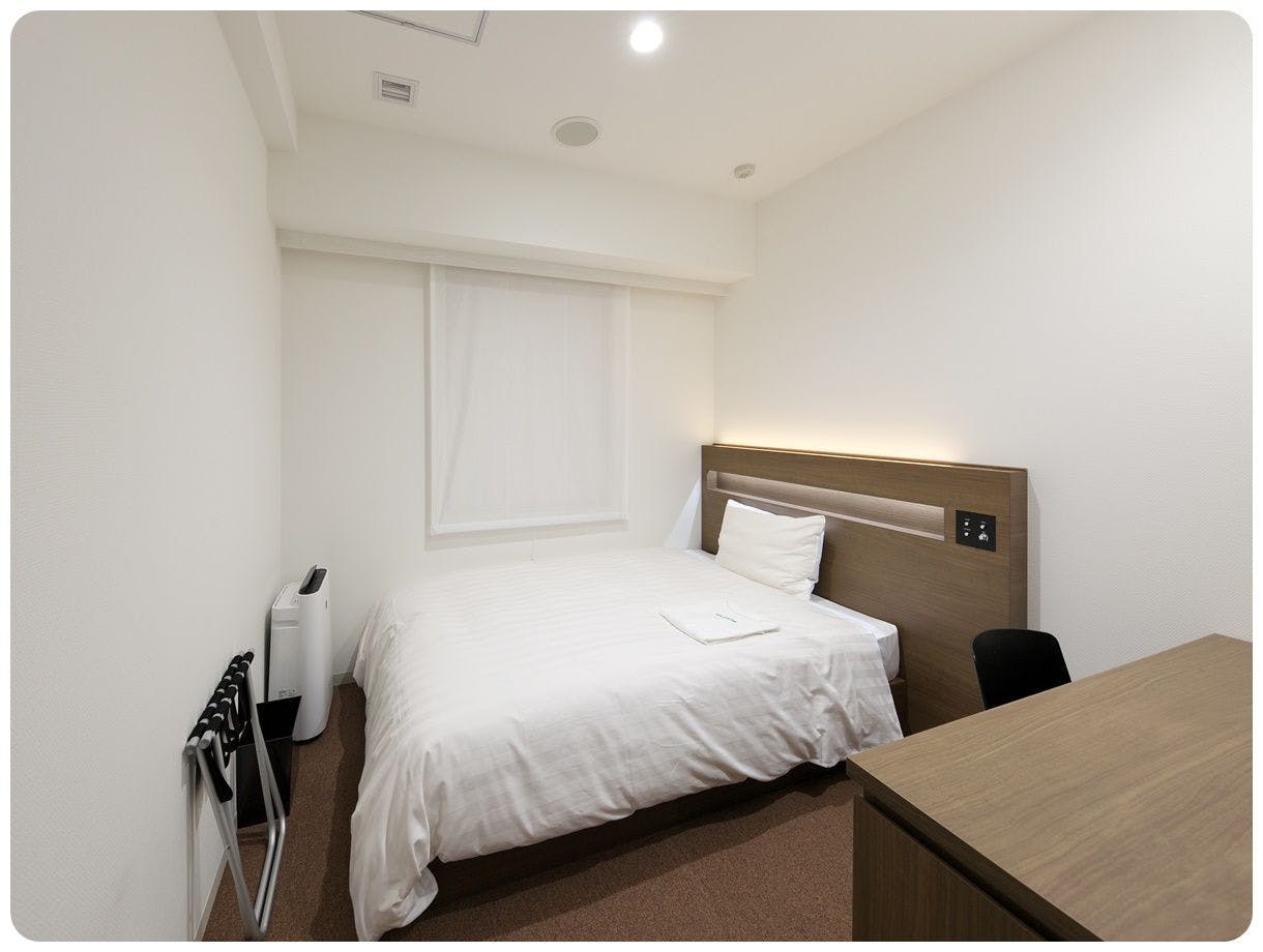 禁煙のダブルベッドが入ったお部屋です。シングルよりひと回り大きいベッドは2人で並んでも余裕があり、ゆっくりおやすみ頂けます。洗い場のあるセパレートタイプのバスを採用。