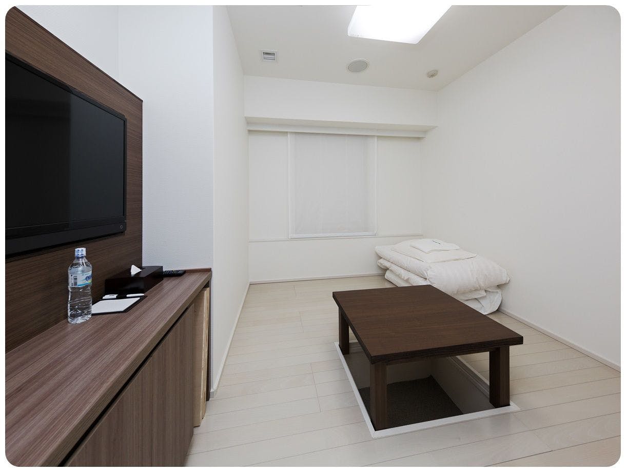 パレットルームとは、クツを脱いで過ごす、掘りごたつ式のフローリングのお部屋です。床全体をフラットにでき、テーブルや座イス、布団のレイアウトをお好みで変更できます。布団幅:78cmこちらのお部屋はユニットバスになります。お布団を敷いた状態でのチェックインをご希望の方は、ご予約時に「宿へのコメント欄」へご記入下さいませ。