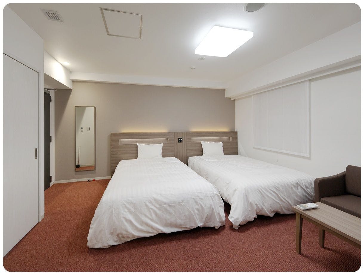 広さ27平米のベッドを2台用意したツインルーム。トリプル利用にも対応可(エクストラベッドを追加)。カップル利用だけでなく、ご家族連れやグループ宿泊にも最適です。洗場のあるセパレートタイプのバスを採用しております。
