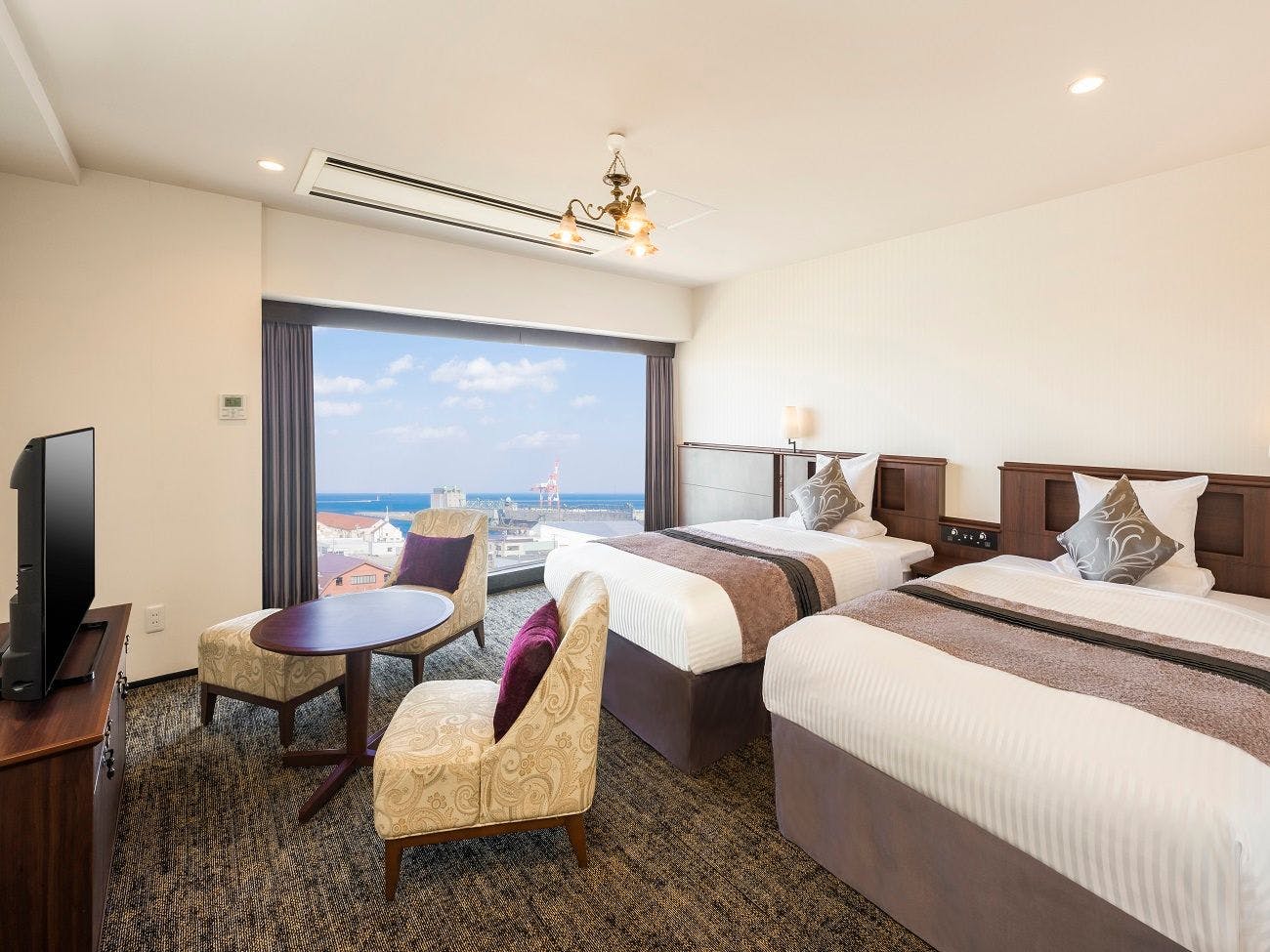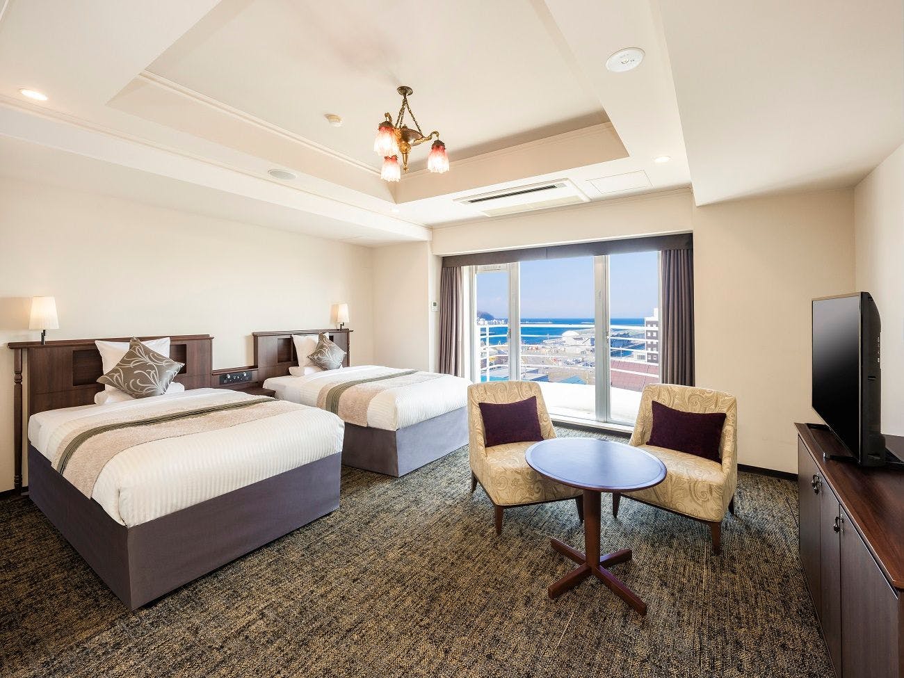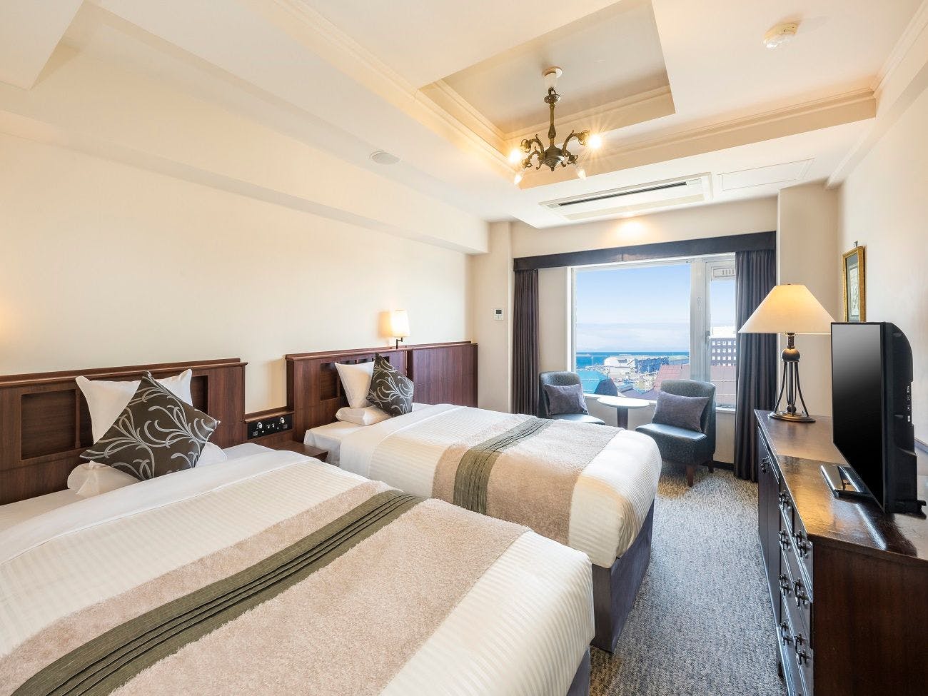 ■広さ:33.2平米 ■ベッド幅:120cm×2台(エキストラベッド 110cm×1台追加可能)・エキストラベッドご利用で最大3名様までご宿泊いただけます。・Wi-Fi完備・加湿空気清浄機