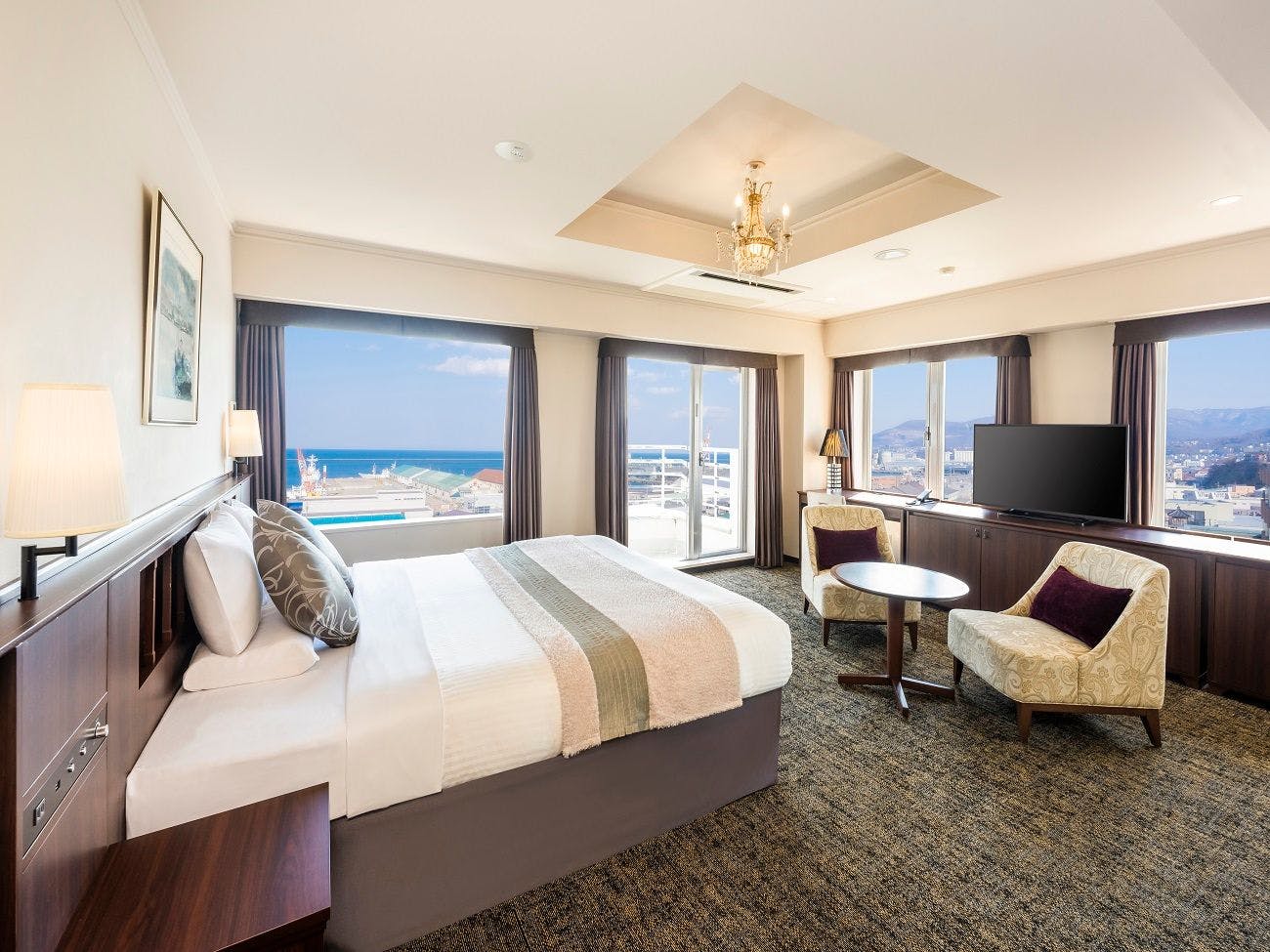 JR「小樽駅」より徒歩8分。■眺望街側 ■広さ:20.9平米 ■ベッド幅:120cm・Wi-Fi完備・加湿空気清浄機