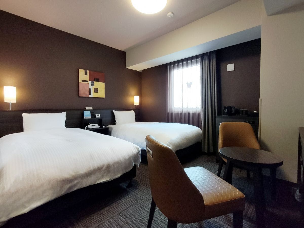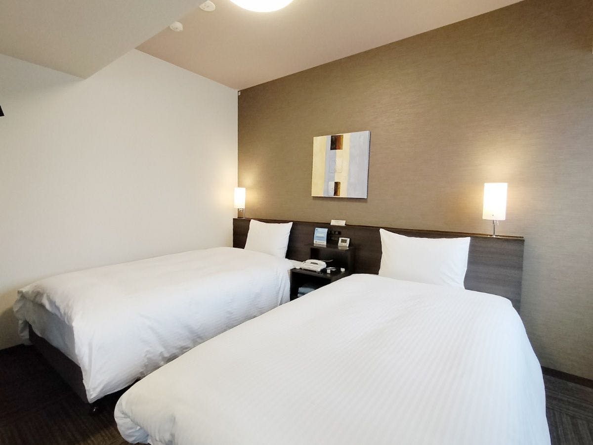 スタンダードなツインルームです。電子タバコのみ喫煙可能です。加湿機能付空気清浄機を設置しております。ベッドサイズ110×200(cm)
