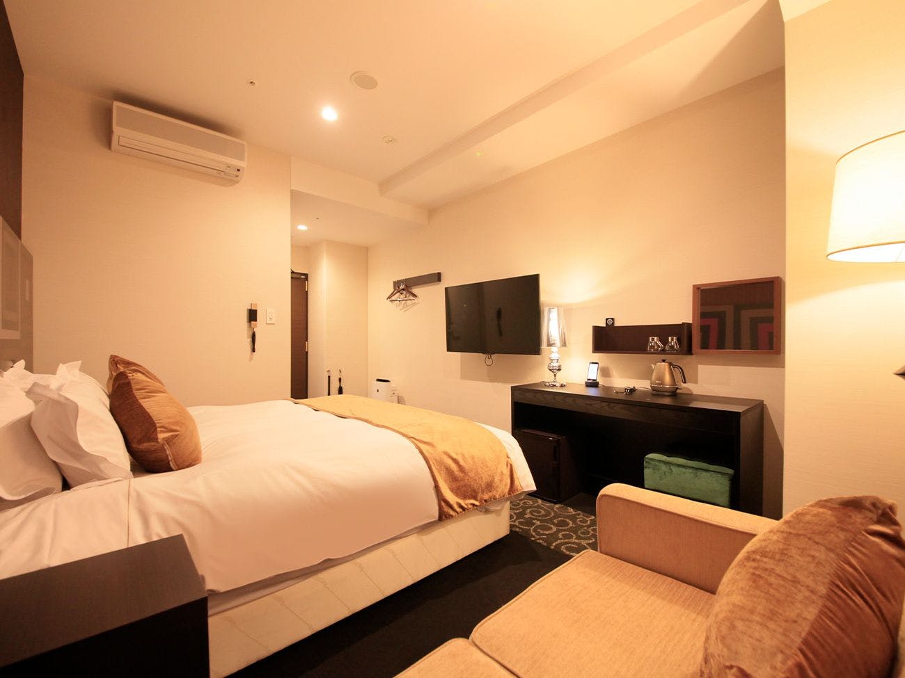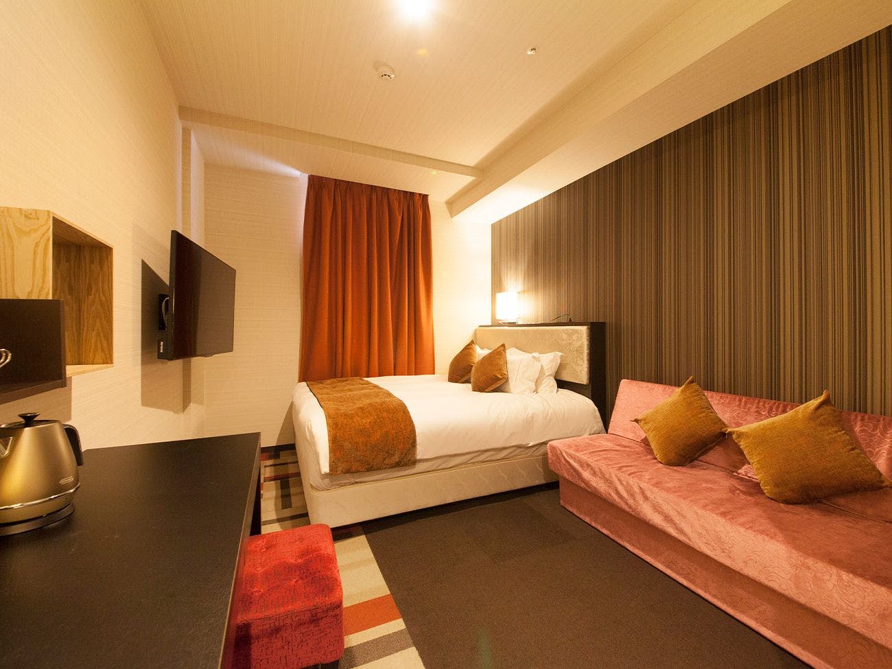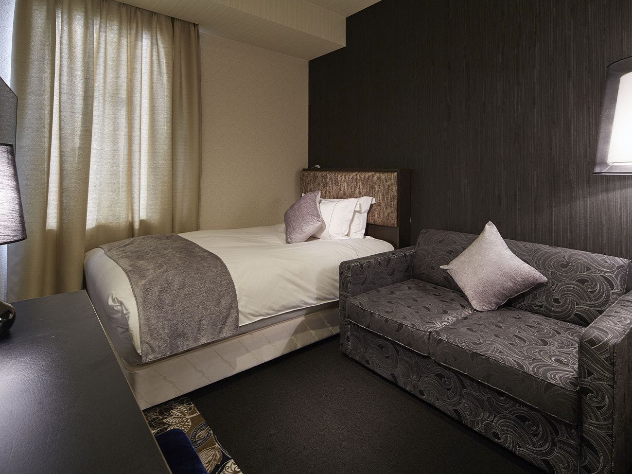 こちらの客室は19:00以降C/I可となります約15平米 / ダブルベッド(140cm幅) ソファーベッド(100cm幅) / 2名様までのご利用時はダブルベッドのみ