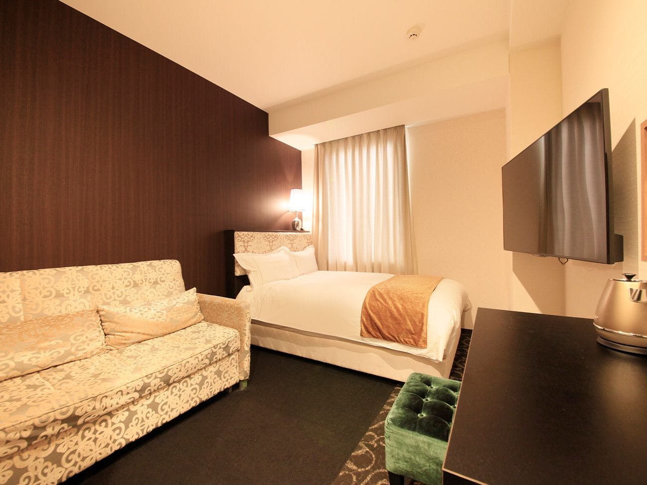 こちらの客室は19:00以降C/I可となります約14平米 / セミダブルベッド(120cm幅) ソファーベッド(100cm幅) / 2名様までのご利用時はセミダブルベッドのみ