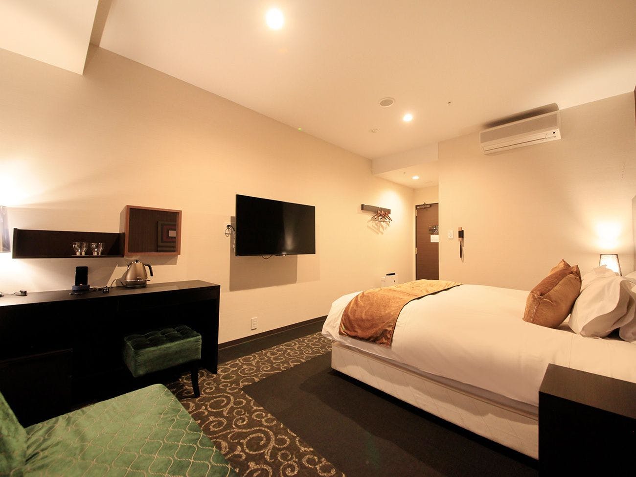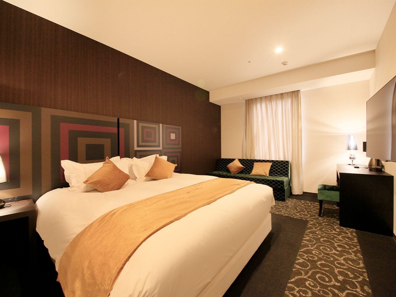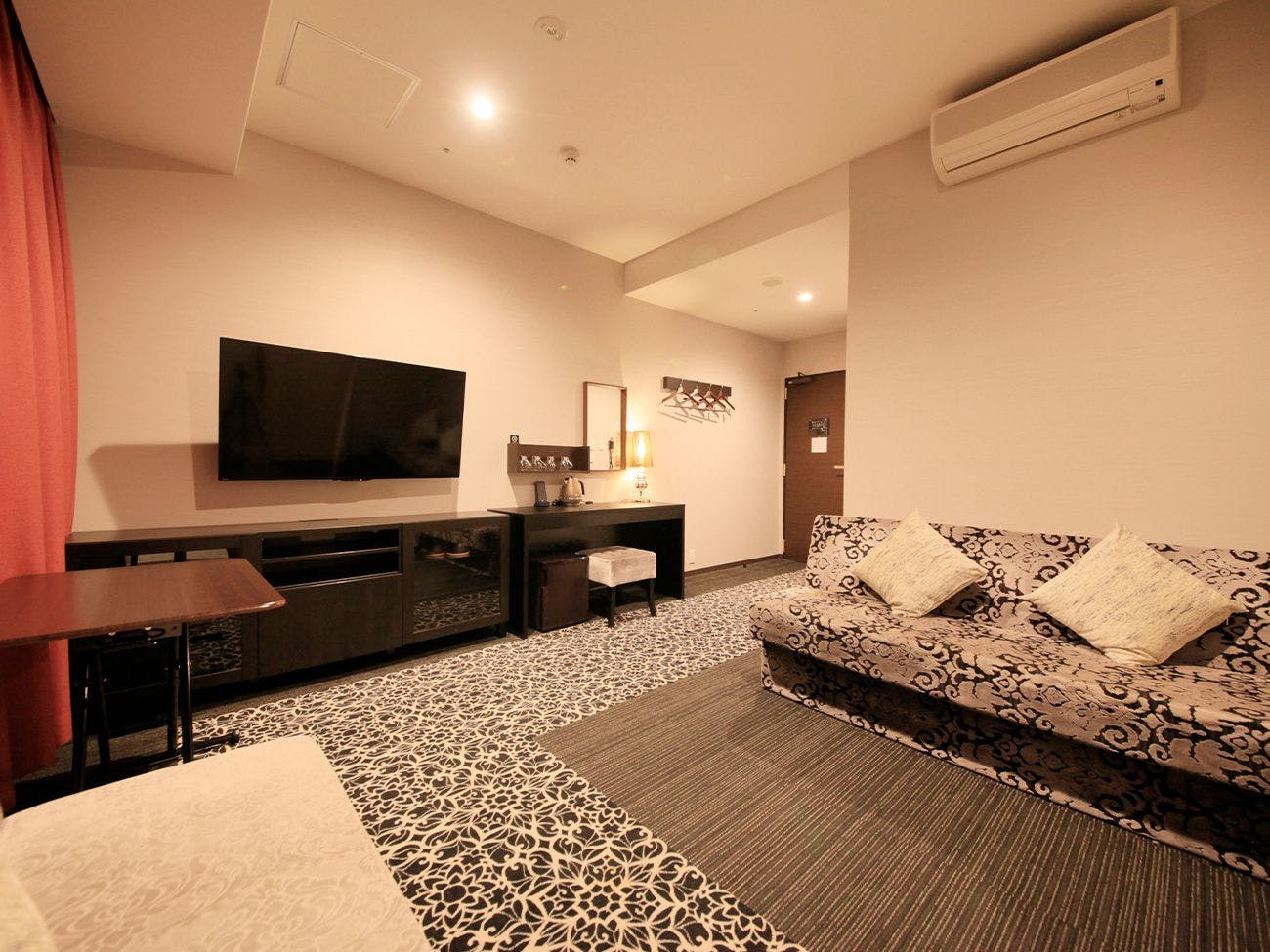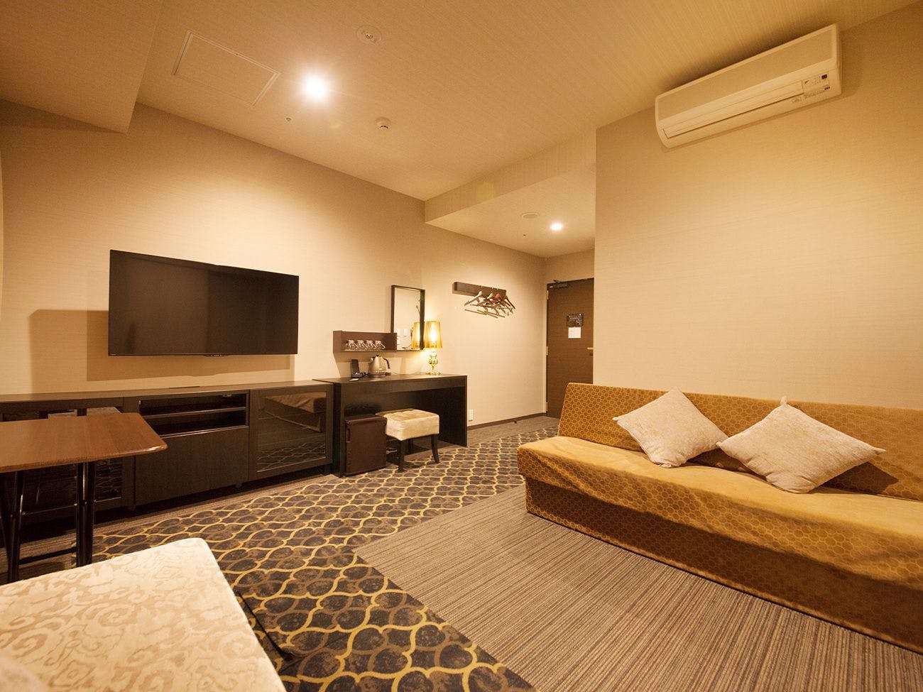 約20平米 / キングベッド(180cm幅) ソファーベッド(100cm幅) / 2名様までのご利用時はキングベッドのみ