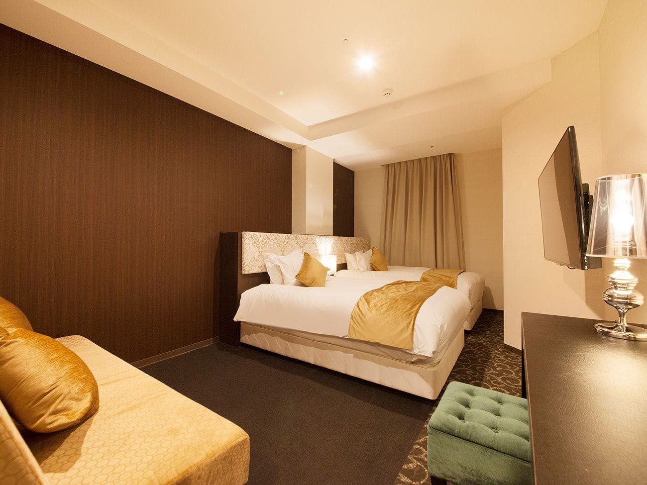 約17平米 / クイーンベッド(160cm幅) ソファーベッド(100cm幅) / 2名様までのご利用時はクイーンベッドのみ